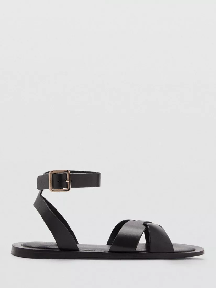 A pair of strappy sandals from Mango. Crafted from leather with a cross-strap open toe, a flat heel and a buckle fastening at the ankle.