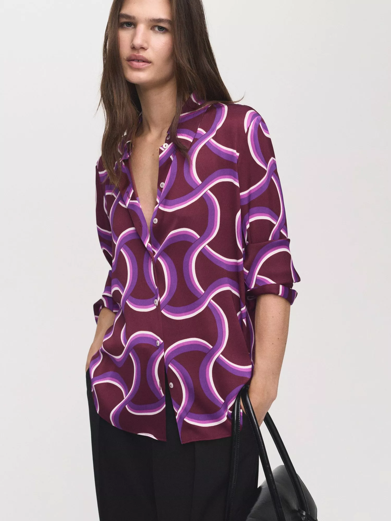 Bring a fresh perspective to your day with this swirl-patterned blouse. The collared neckline and long sleeves offer smart versatility, while the playful design ensures you feel confident, comfortable, and ready for whatever comes your way.