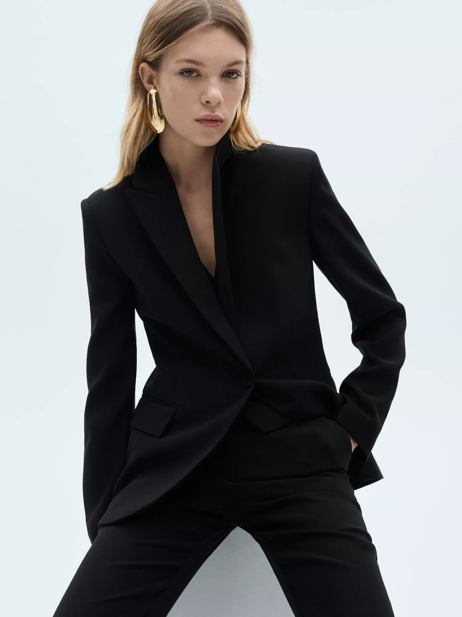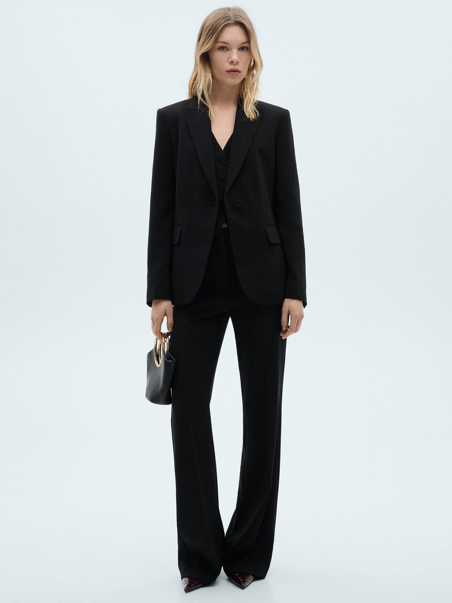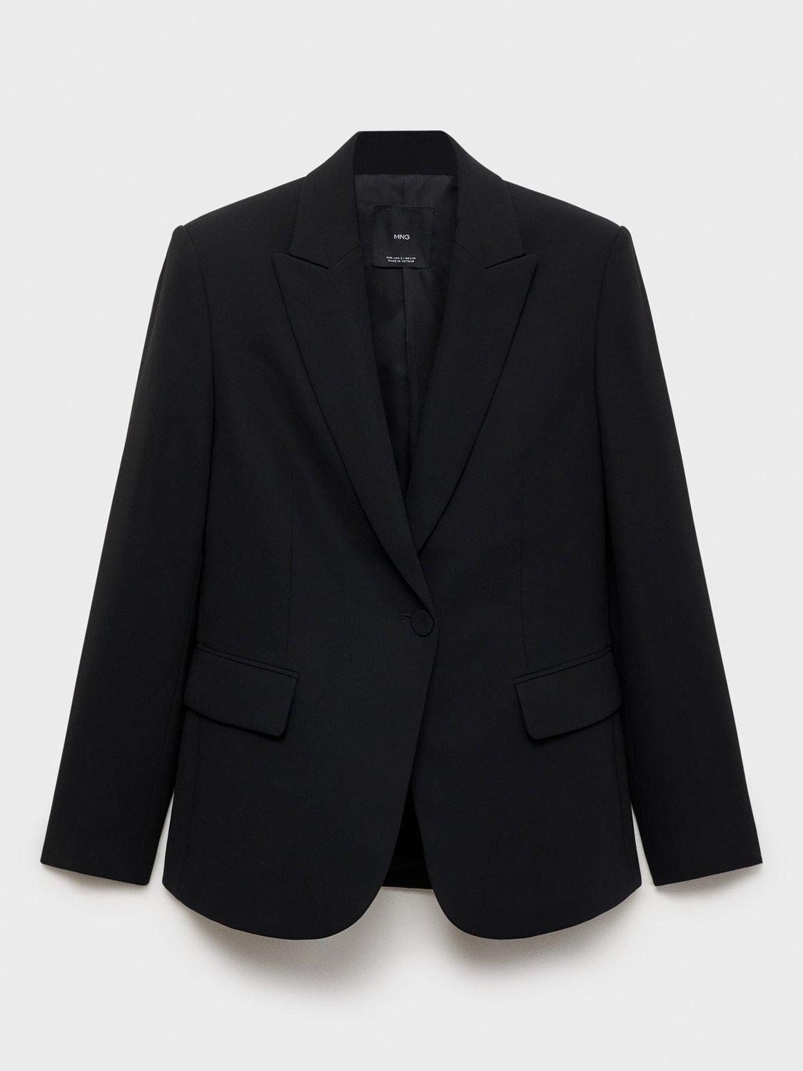 Pulling on for instant smartness, this single-breasted blazer by Mango features a classic collar lapel, button cuffed long sleeves and pockets.