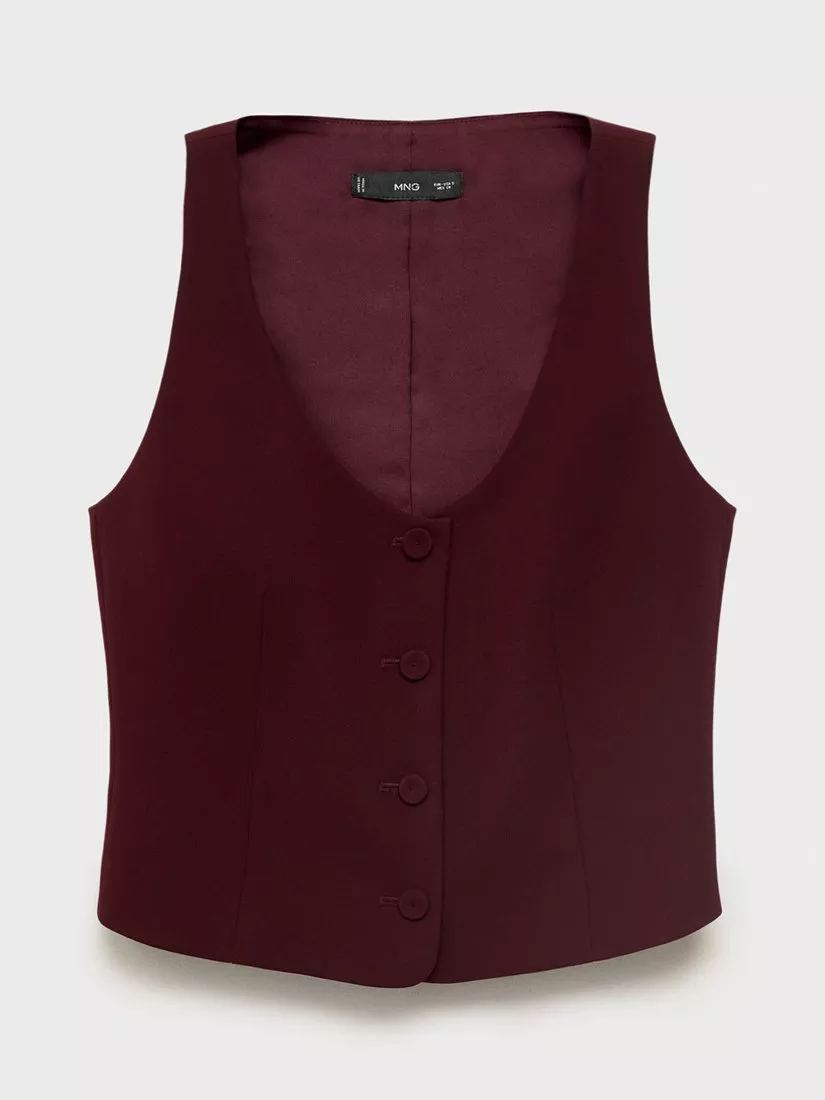 Mango's short V-neck waistcoat – designed for smooth layering and easy everyday style. Its clever tailoring delivers comfort and a striking edge, making every outing feel effortlessly put-together.