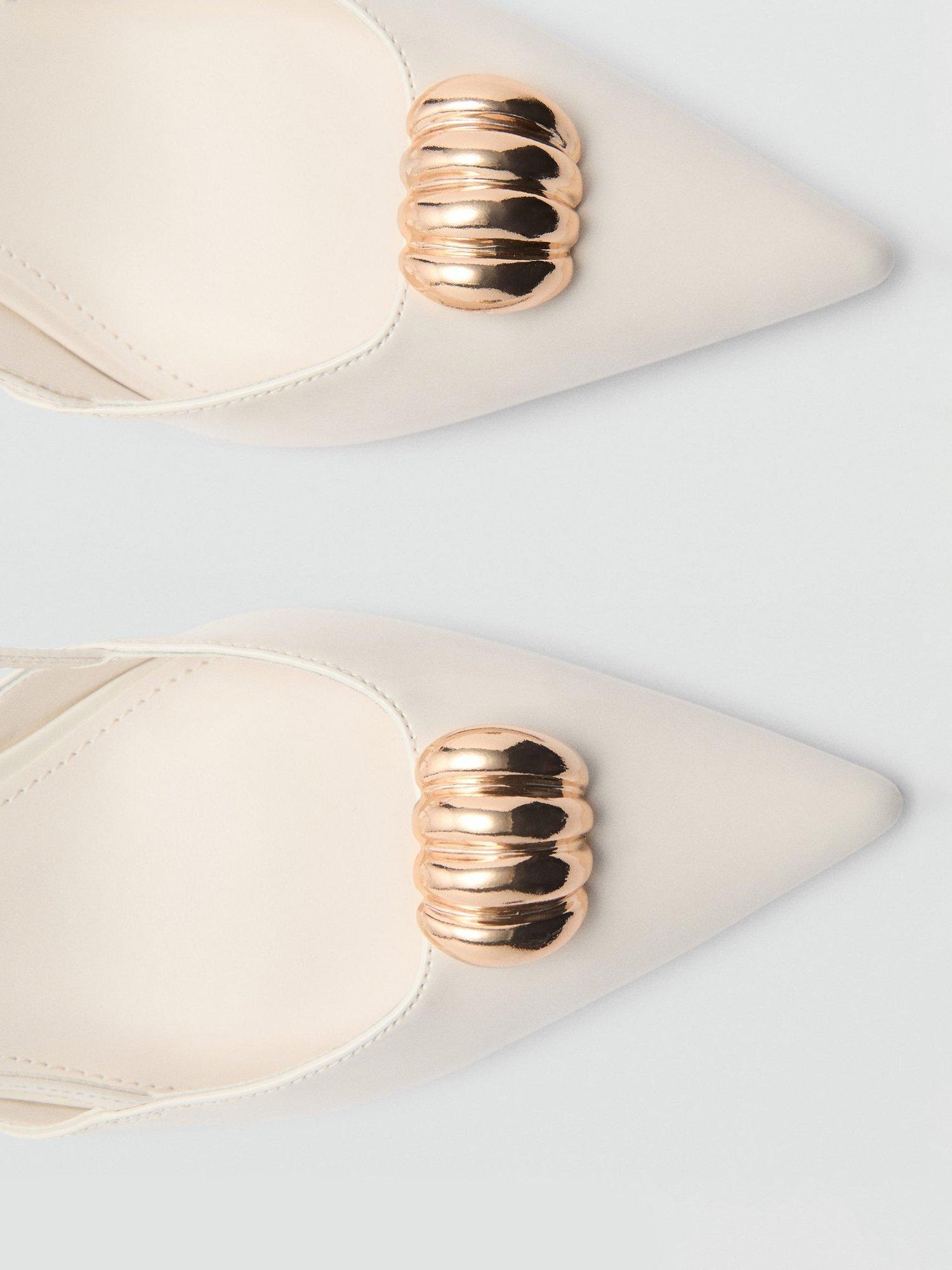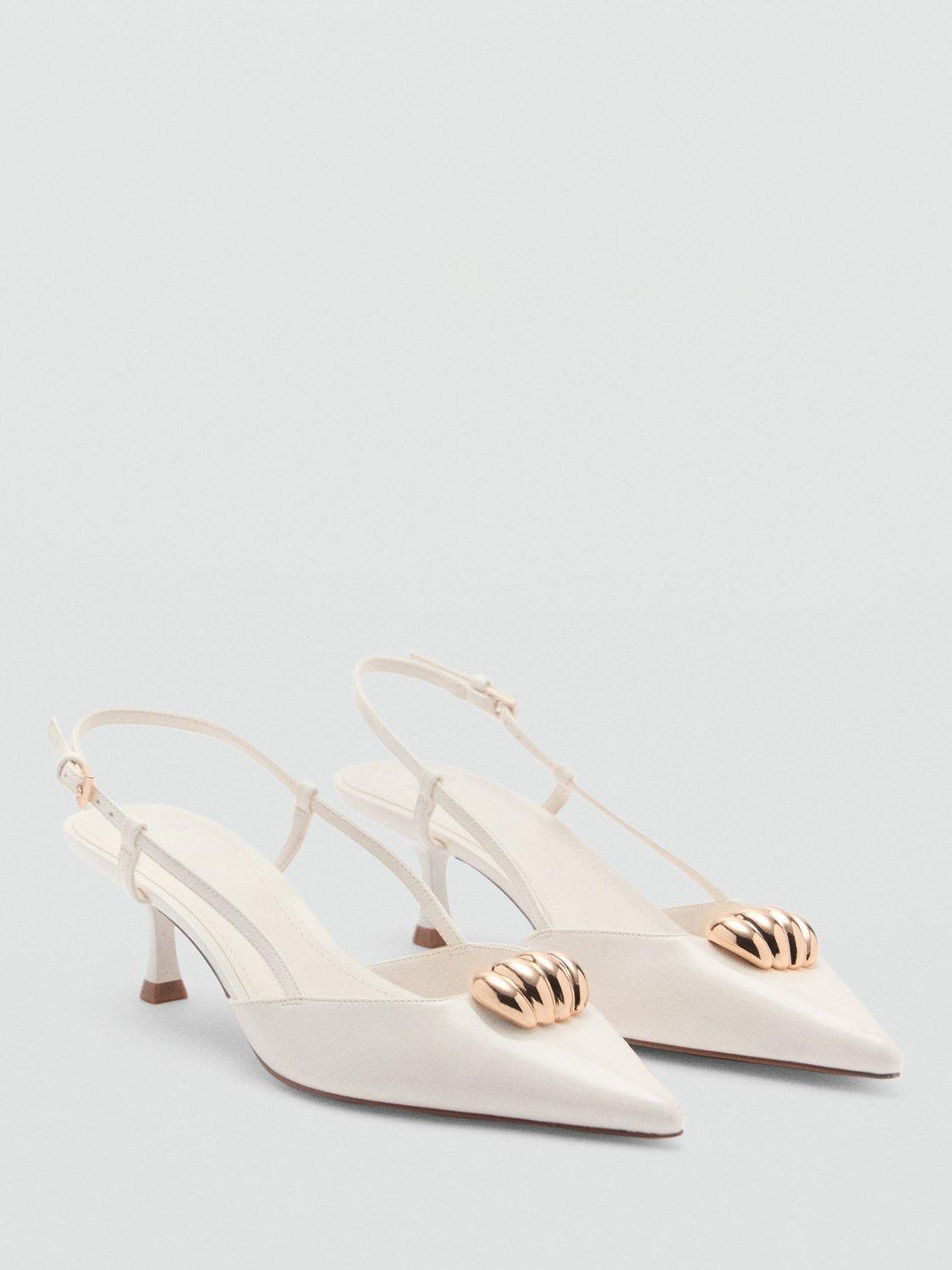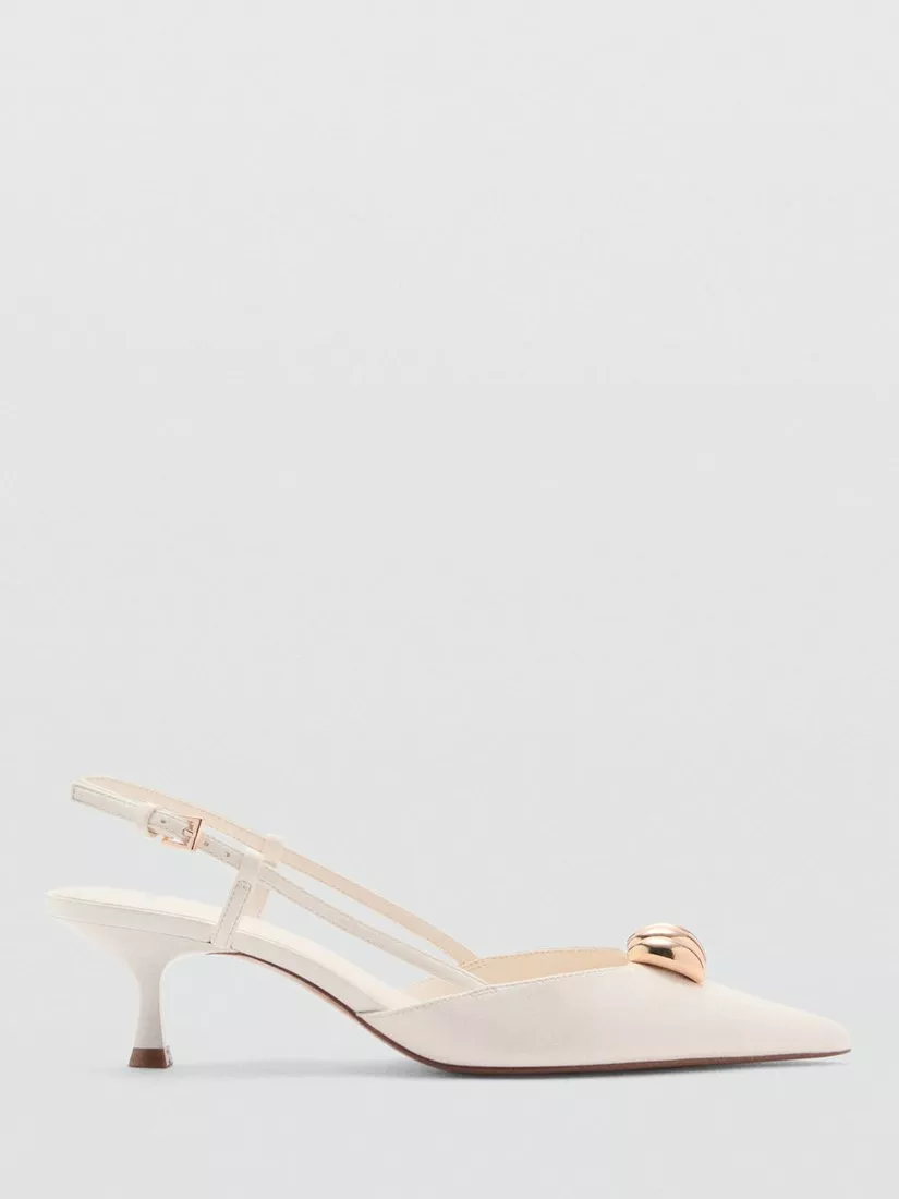 In a modern court design with a comfortable kitten heel and a slingback, this pair by Mango feature a metallic buckle and a pointed toe for a sharp finish.