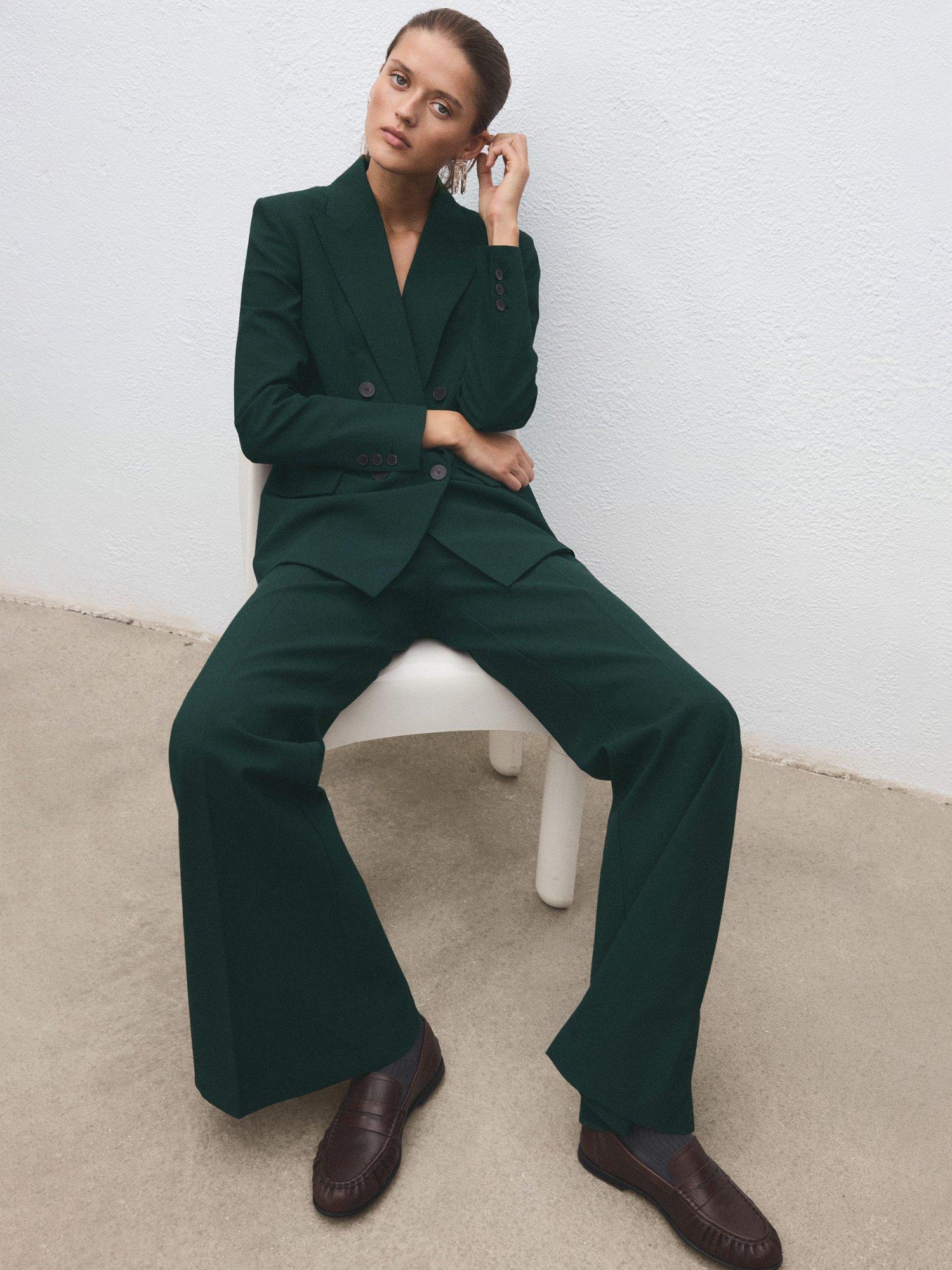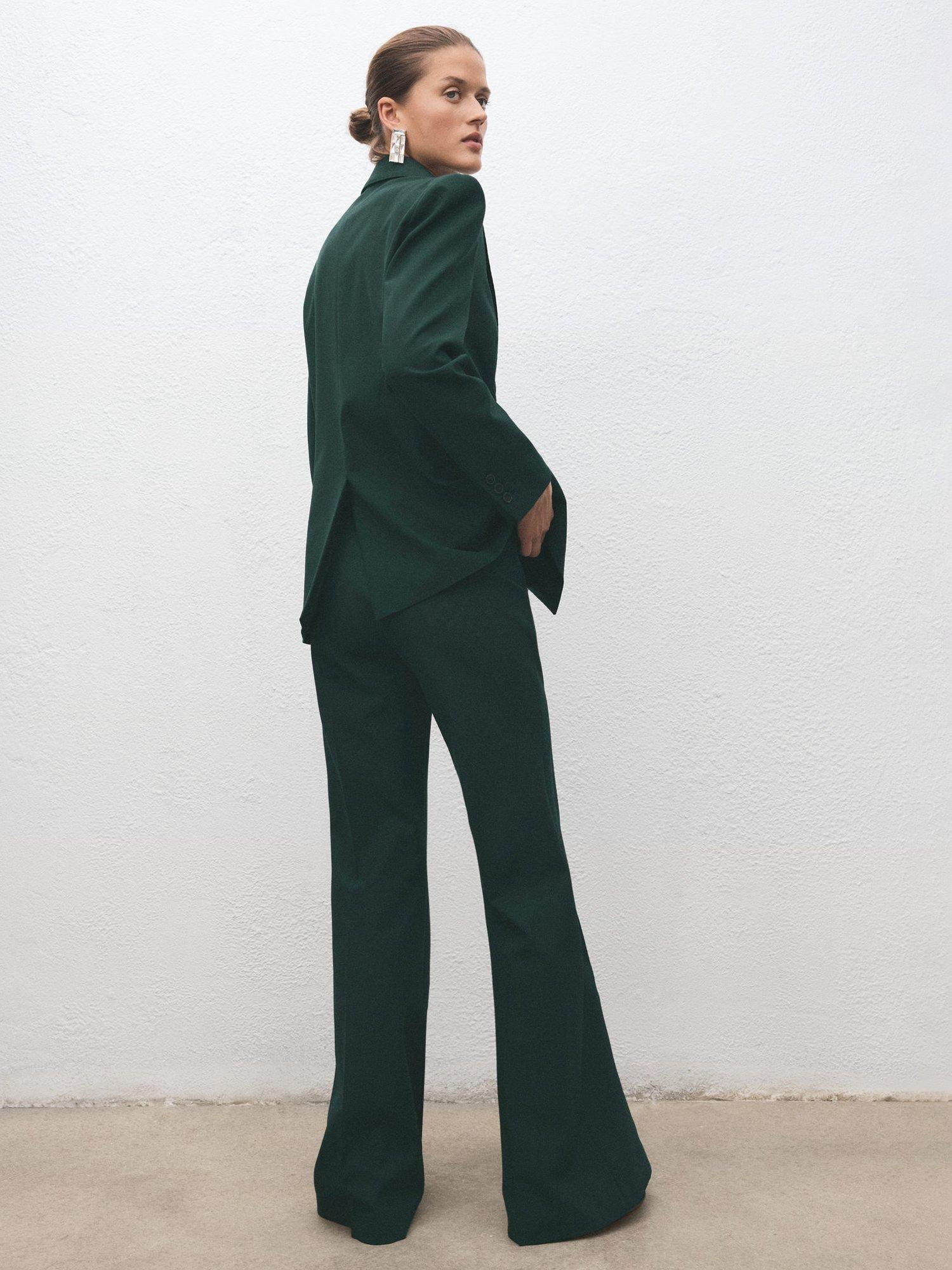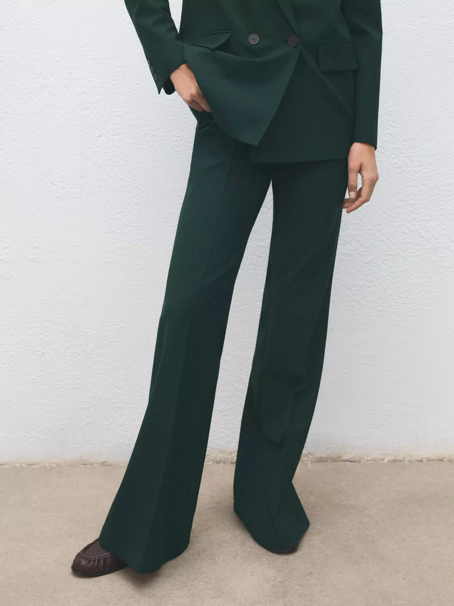 A tailored take on the iconic flared leg trousers by Mango. They sit mid rise with an elasticated waistband and longer length hems.