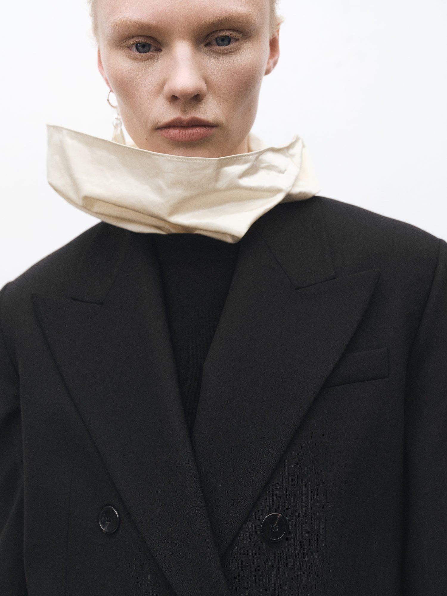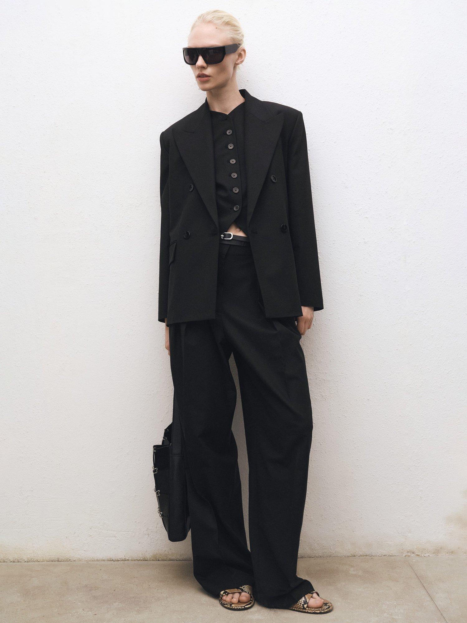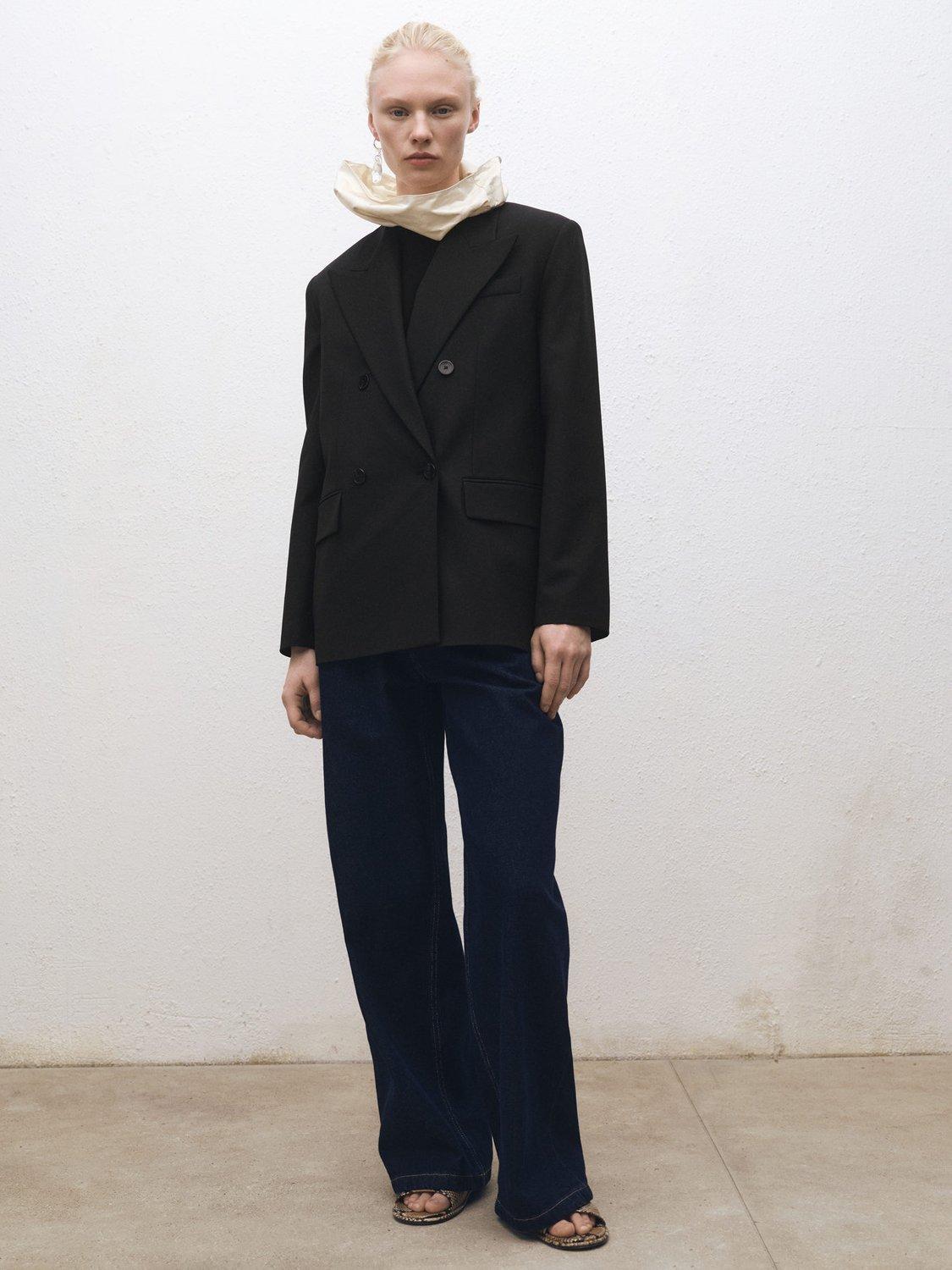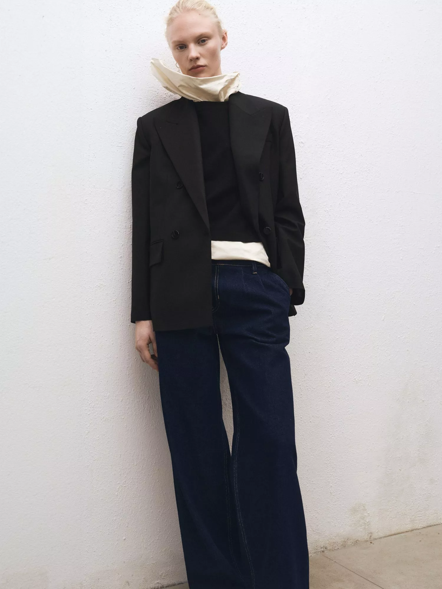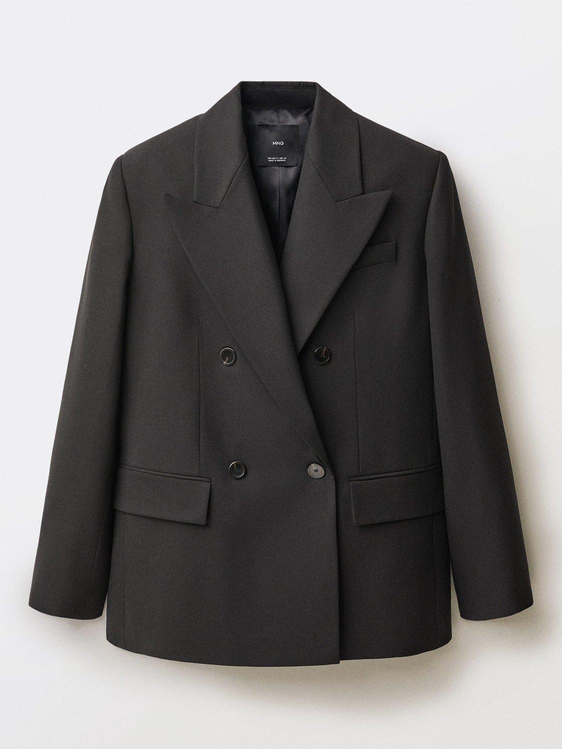 Carefully sketched to a sharp silhouette, this double-breasted blazer jacket from Mango sits at the hip for versatile coverage. Designed with pointed collar lapels, it is blended with wool for quality that will last.