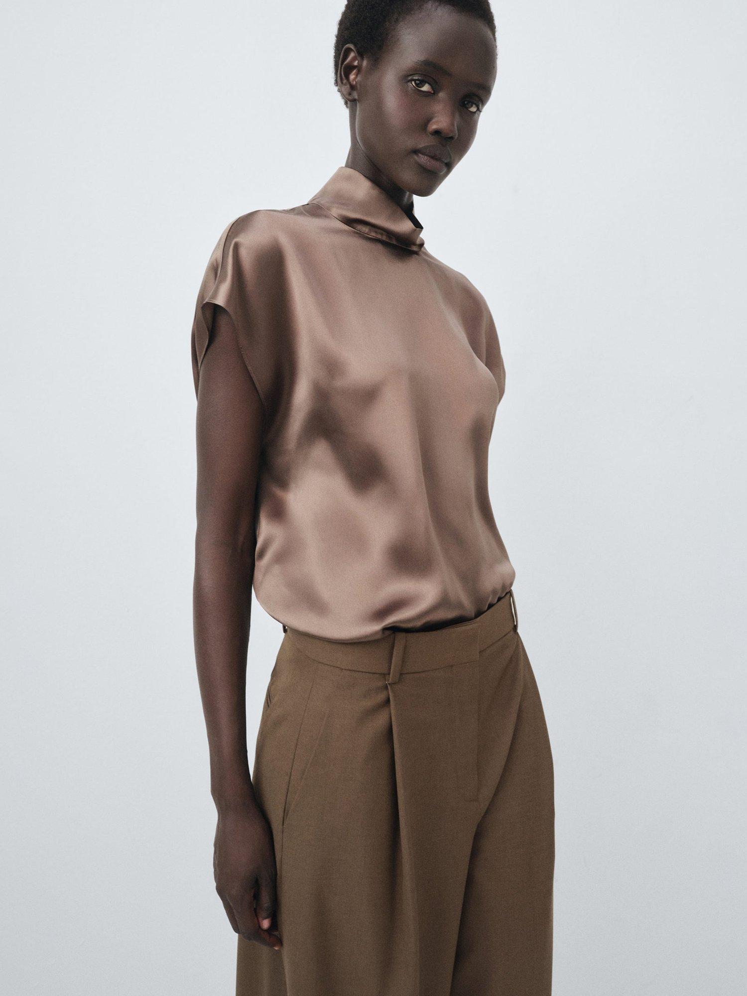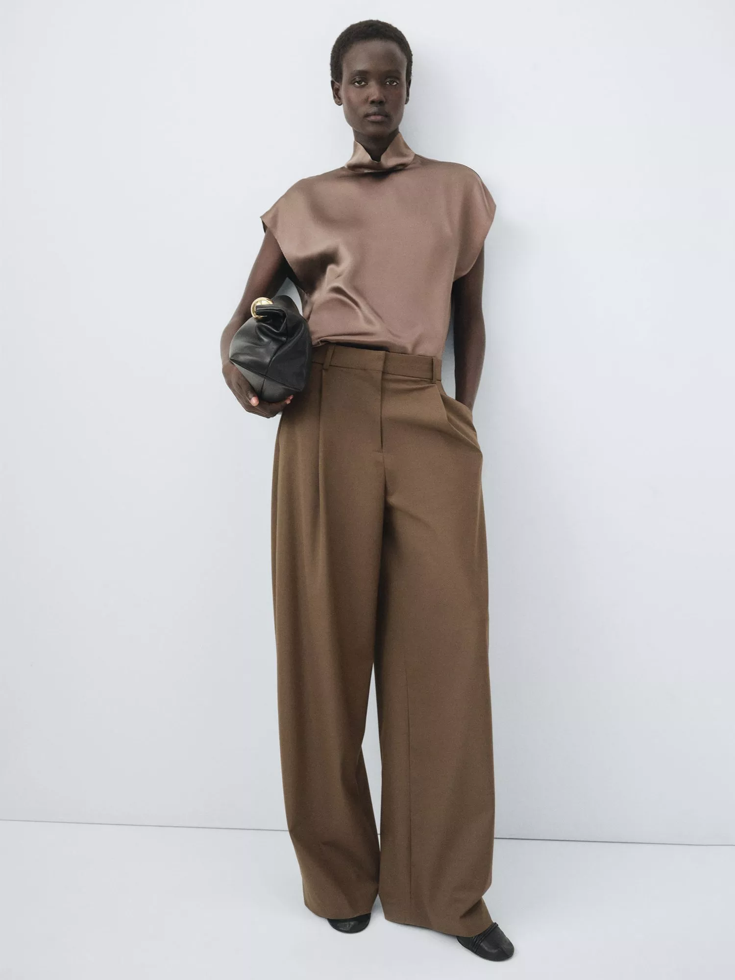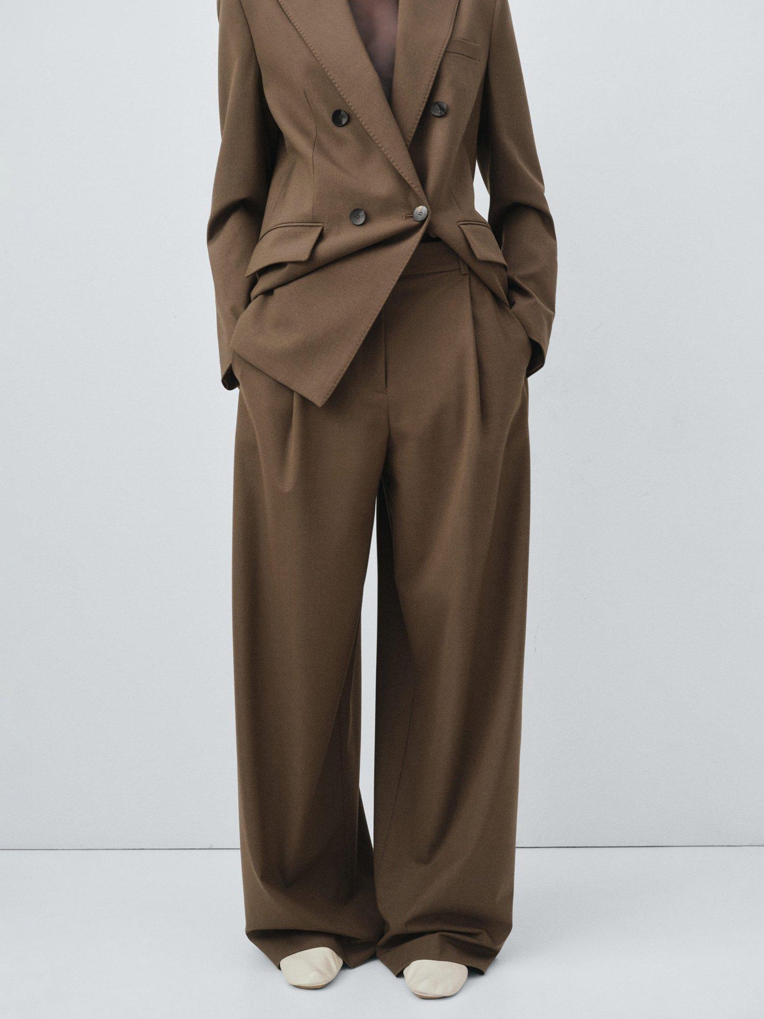 A pair of clean lined, no-nonsense straight-leg trousers by Mango with a wool blended construction. They feature a mid rise with a zip fly and a regular length.
