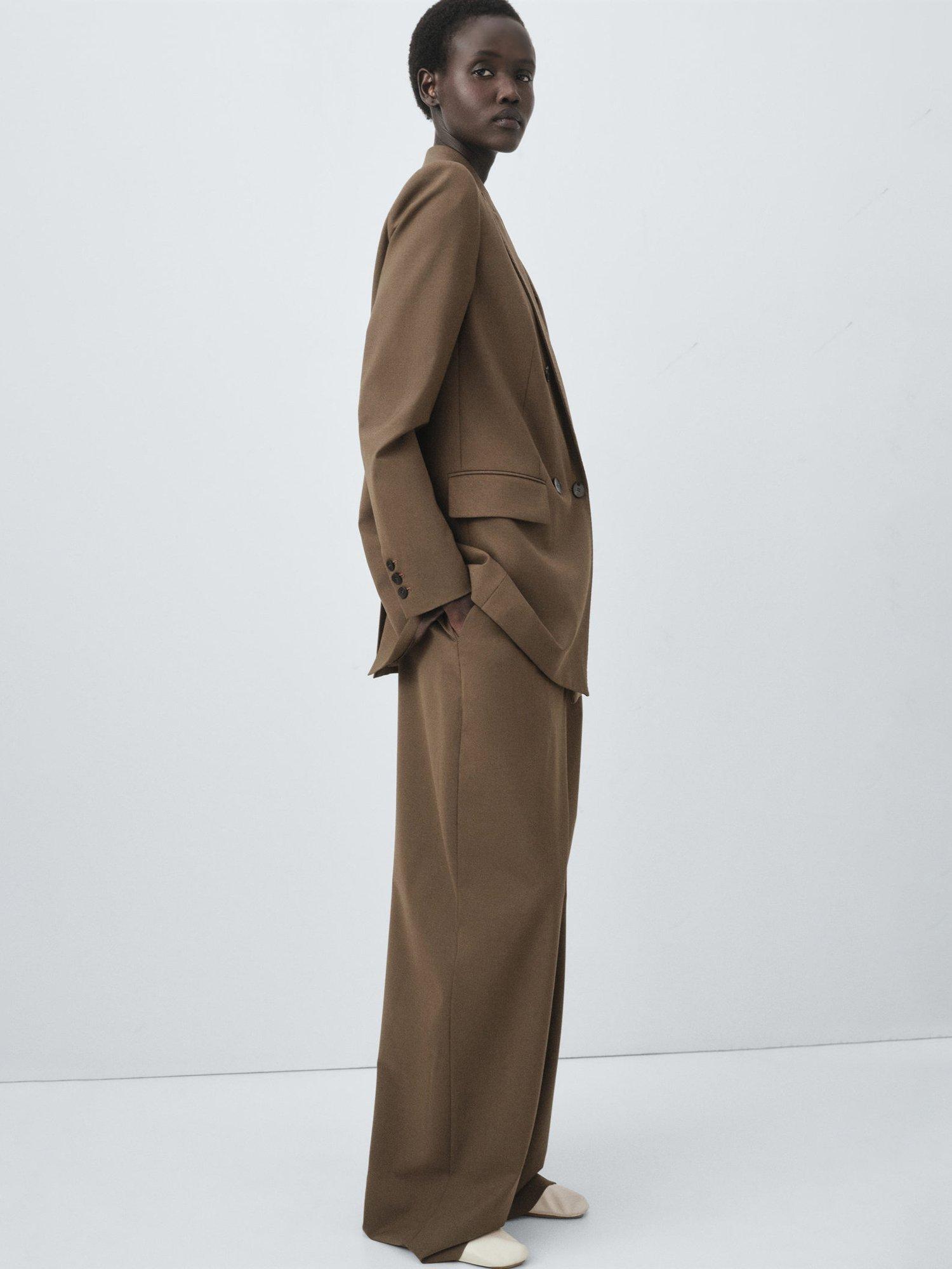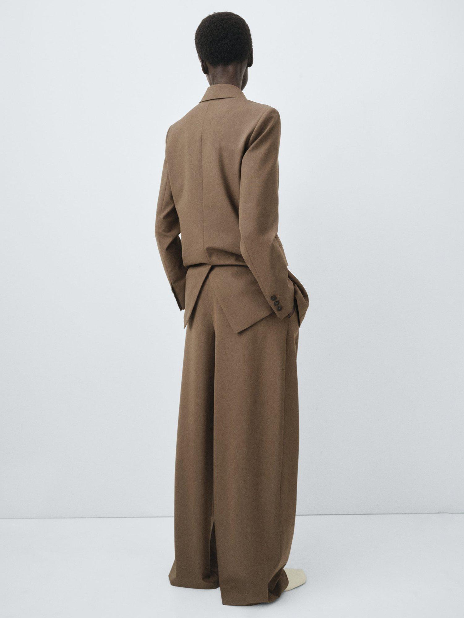 - COMPOSITION: 50% POLYESTER, 26% VISCOSE, 19% WOOL, 5% ELASTANE. LINING: 52% VISCOSE, 48% POLYESTER.