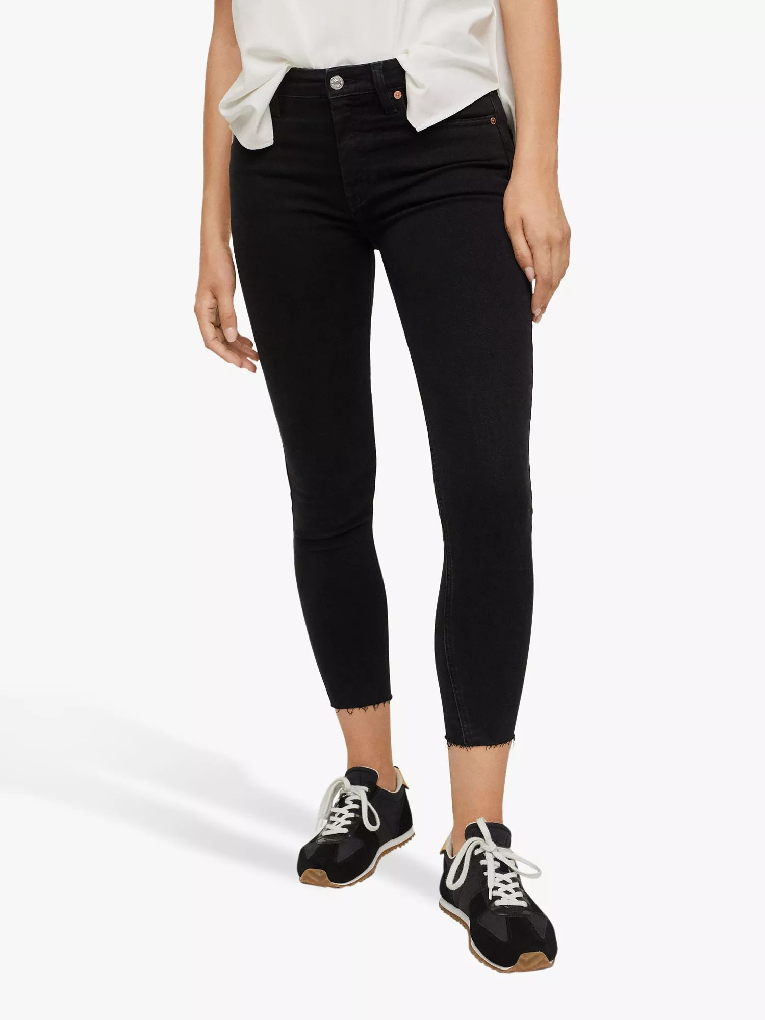 These casual jeans from Mango add classic denim to your collection. Designed with a skinny cropped fit, they have a medium fit waist, five pockets and one button fastening. This style will work with anything from a sweatshirt and trainers, to a cami and heels for a night out.