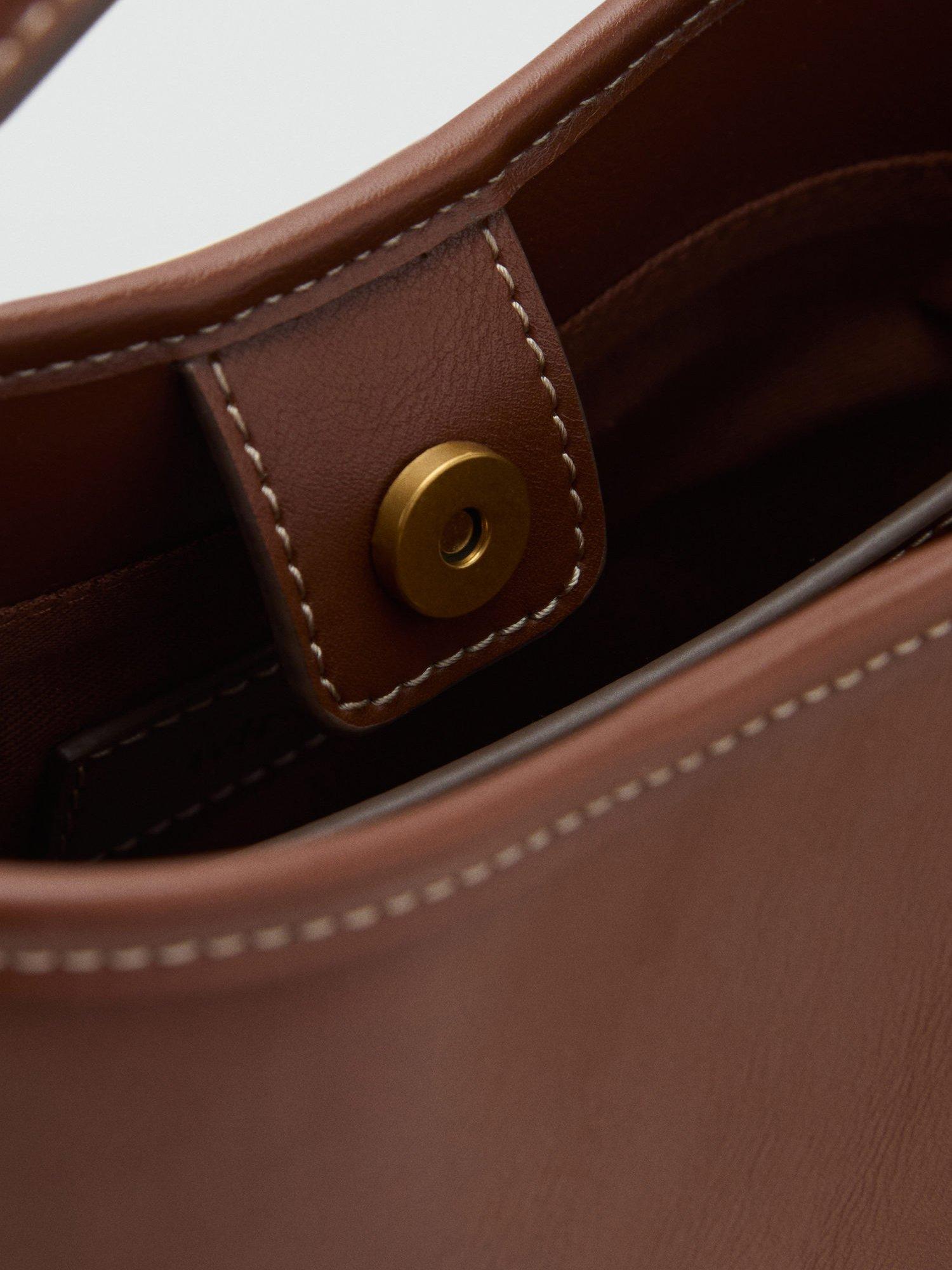 This Mango shoulder bag keeps essentials close at hand, balancing sharp style with everyday ease. An adjustable, detachable strap ensures just-right comfort, while the signature logo print adds a distinctive twist to your daily routine.