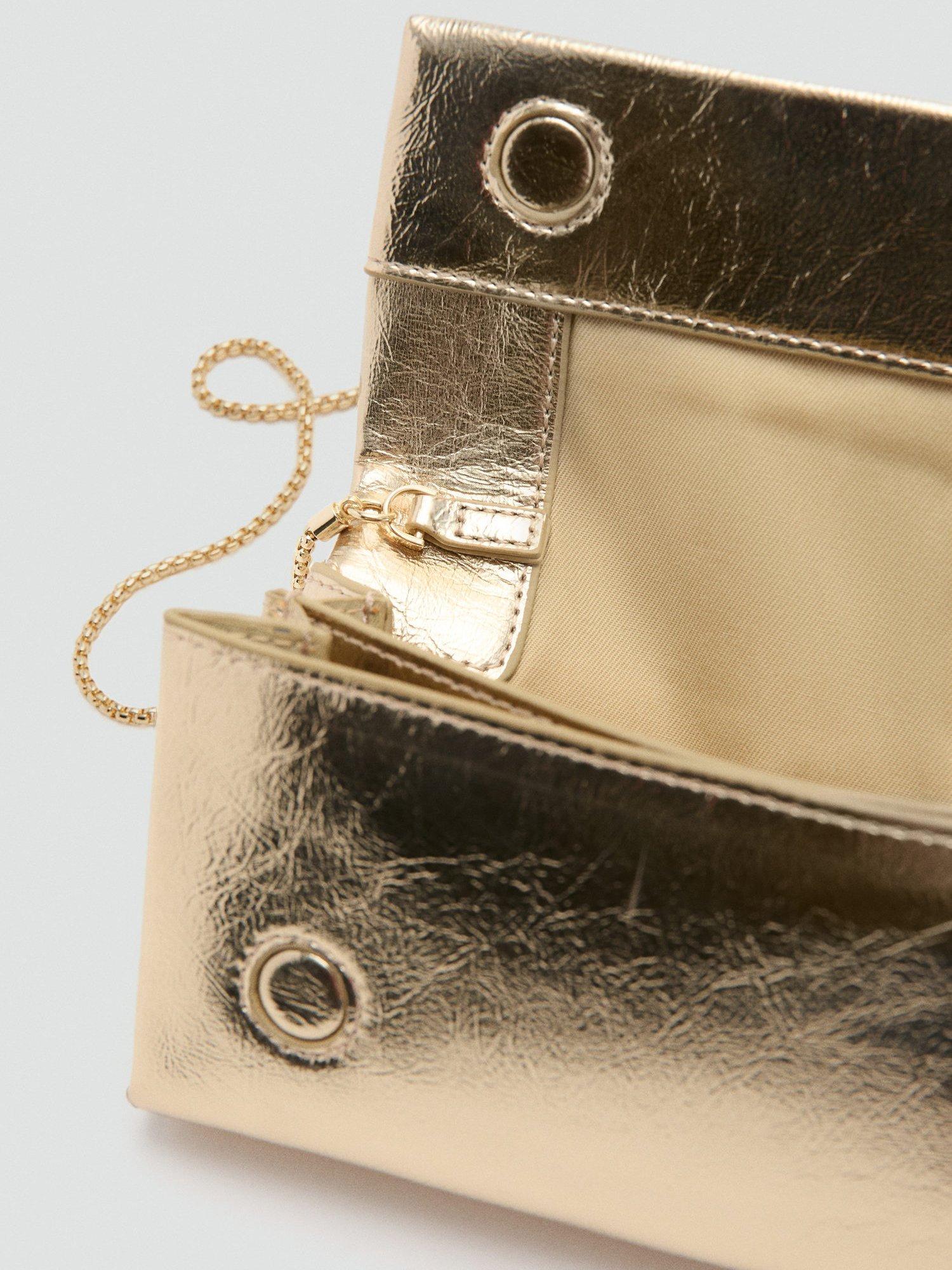 This clutch’s sleek design showcases an inner lining, flap closure with magnetic button and a long strap for the option to carry by shoulder. The perfect companion for your evening adventures.
