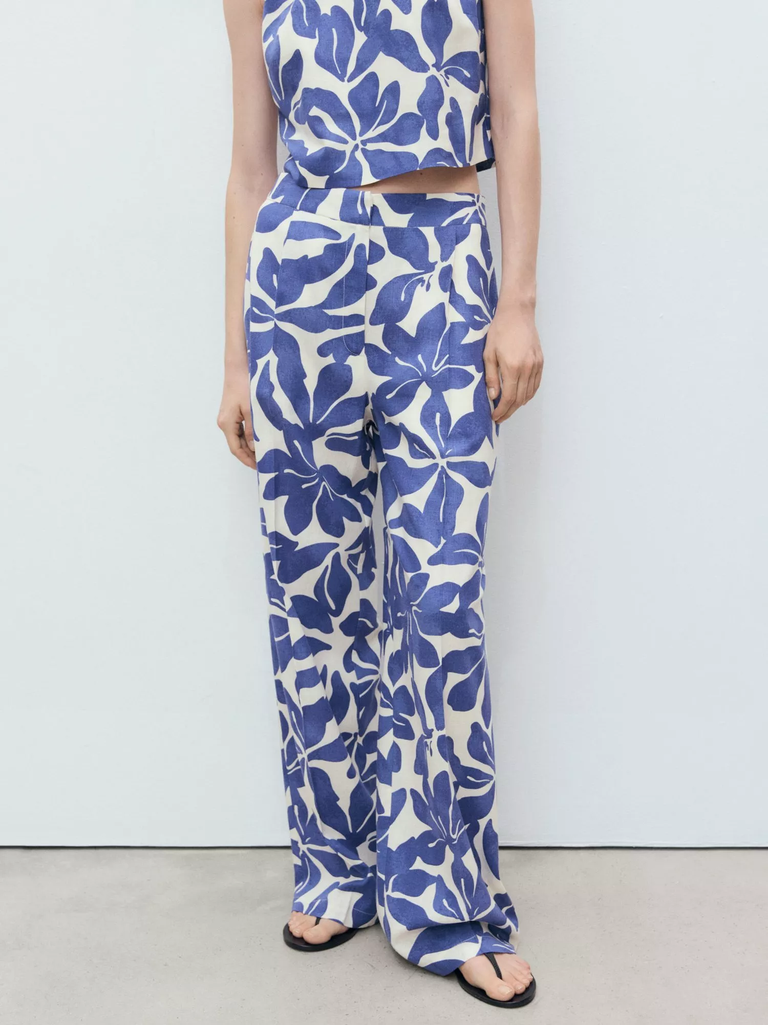 Where low-key structure meets everyday edge - straight-leg trousers from Mango, formed with a light linen-blend base. This style is cut to sit mid rise with a zip fastening, lively floral print and hems that fall to a regular length.