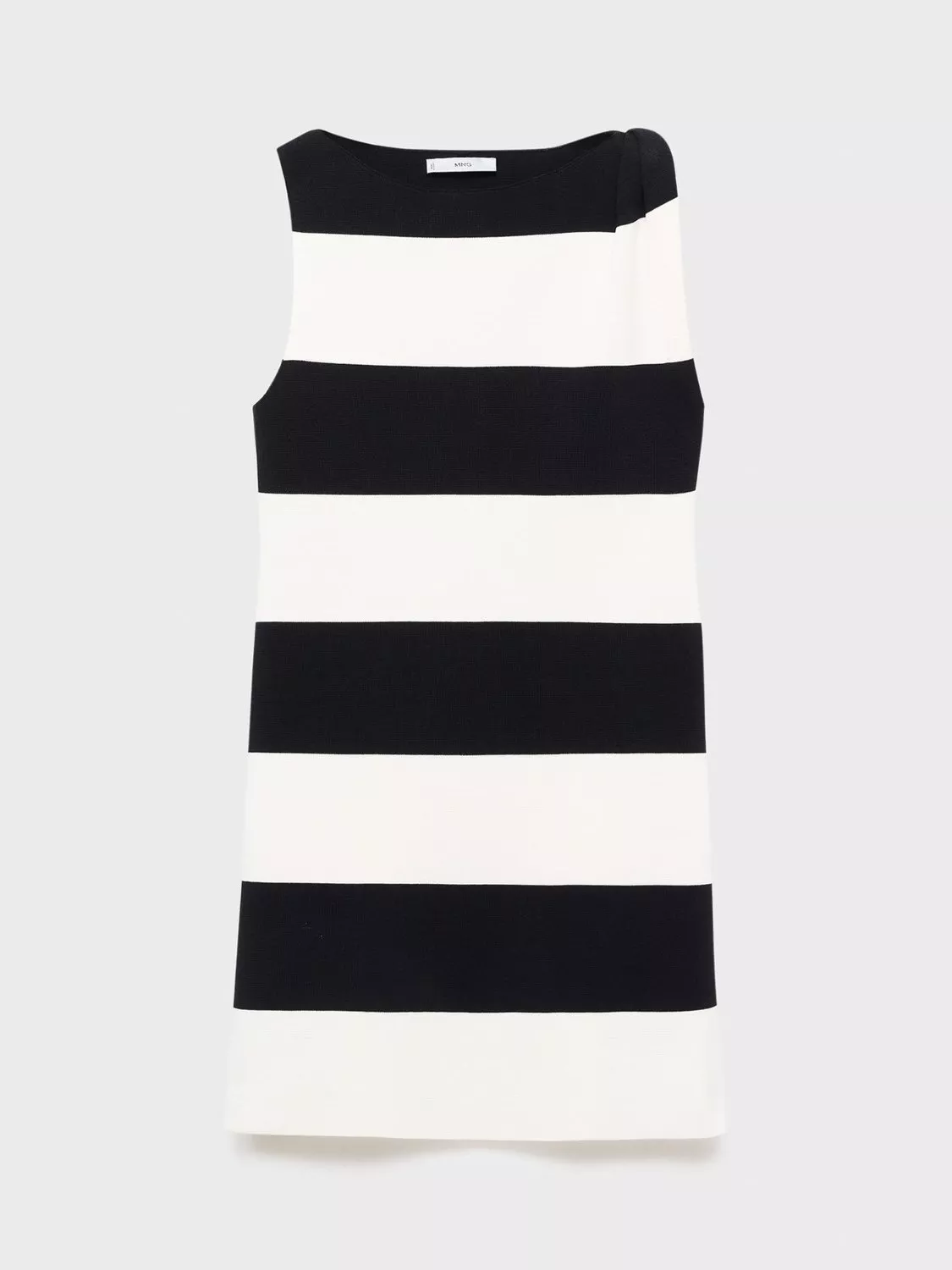 Lightweight and easy to wear, this mini shift dress features a breezy boat neck and subtle stripes, keeping you cool and comfortable for any daytime or summer plan. Its relaxed fit lets you move freely wherever you go.