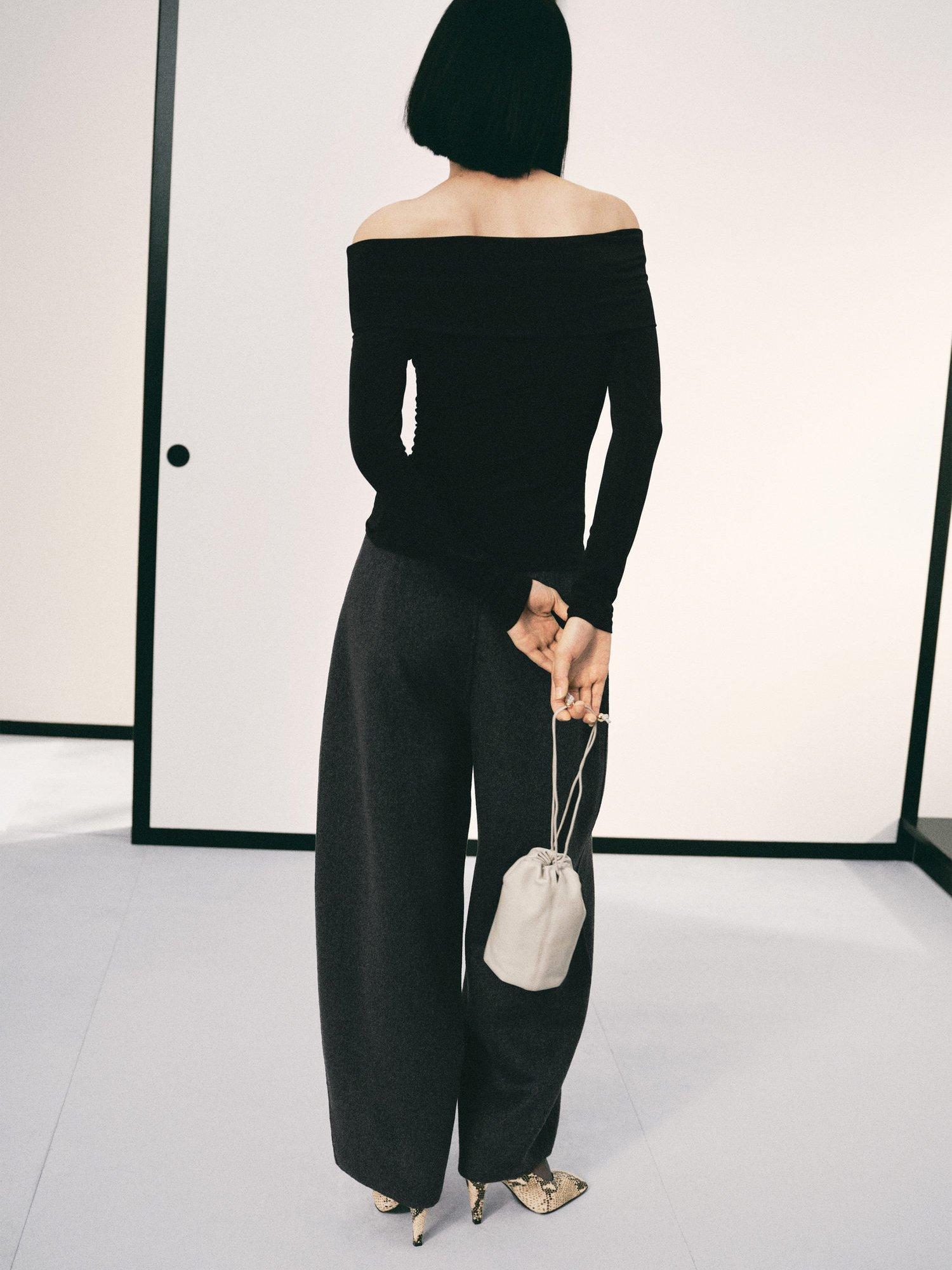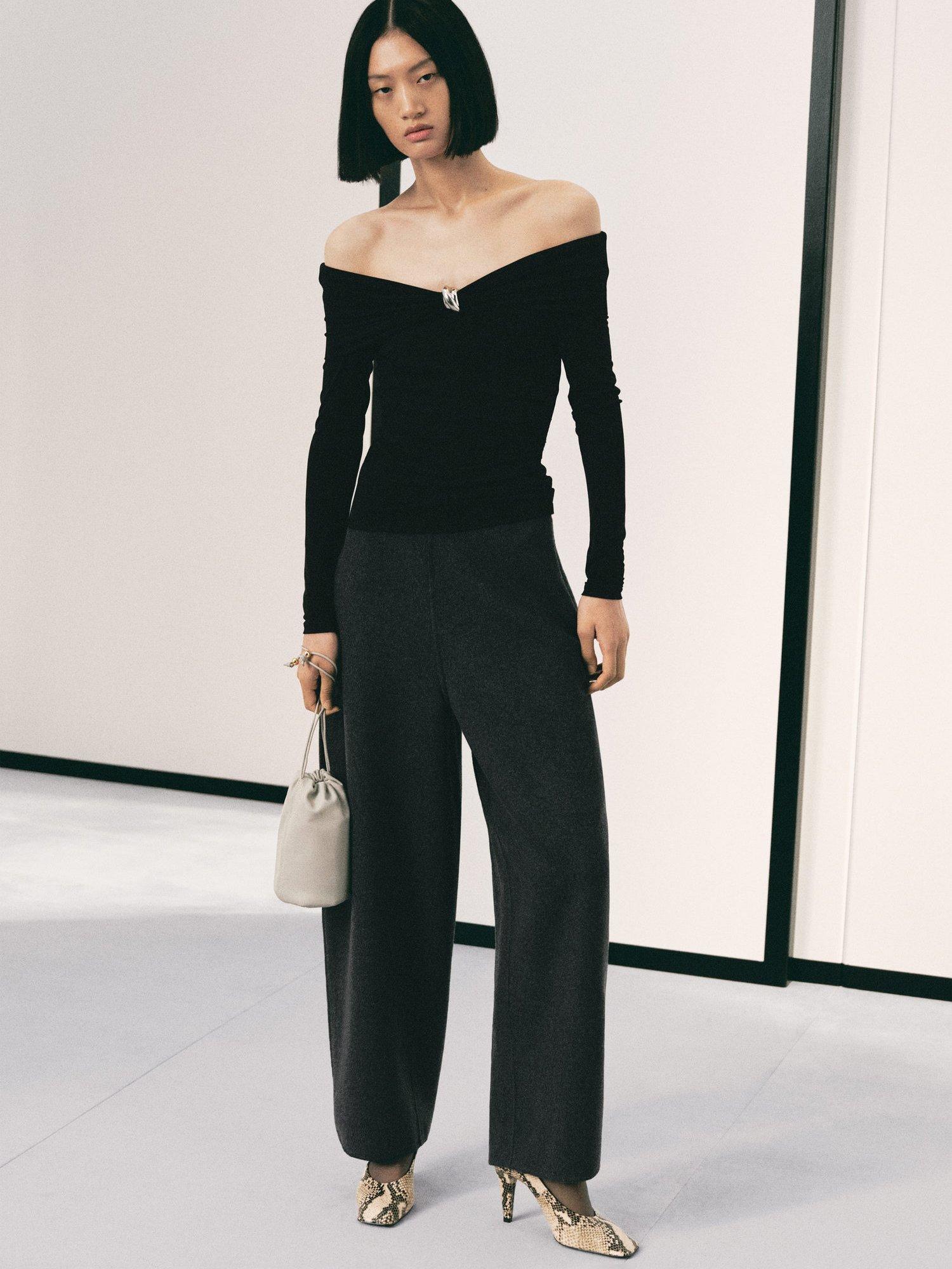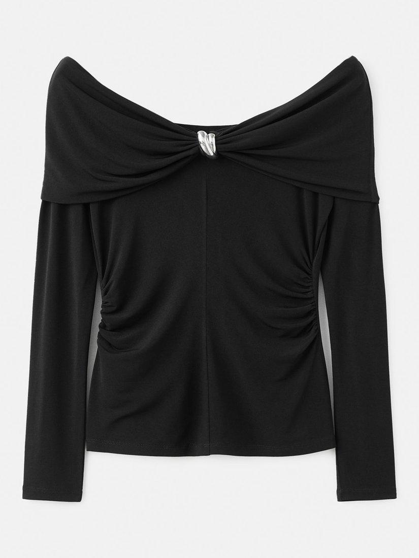 Essential slim jersey T-shirt by Mango. Featuring an off-shoulder neckline and long sleeves, the plain colour is designed to go with anything. One for your everyday lineup.