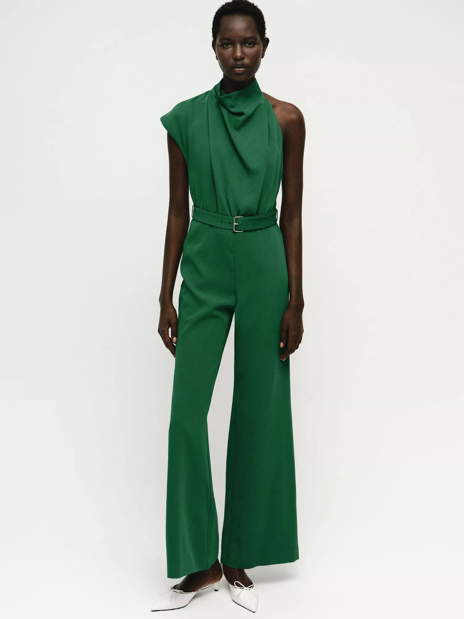 Step into your next party with this asymmetric sleeveless jumpsuit. Carved with a draped neckline and wide legs, it gives you unrestricted movement and smart style. Finished with a belted waist, it's a confident choice for when you want to feel comfortable. Pair with stilettos for a 10/10 look.