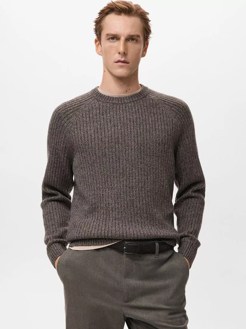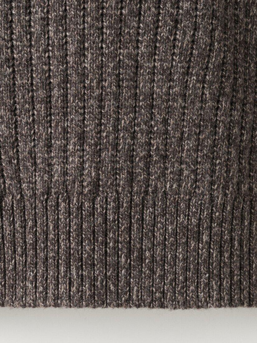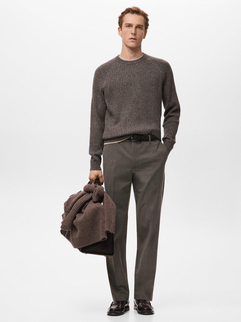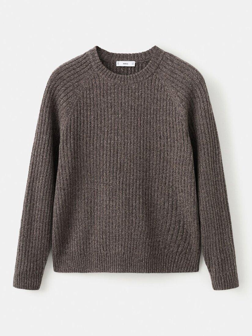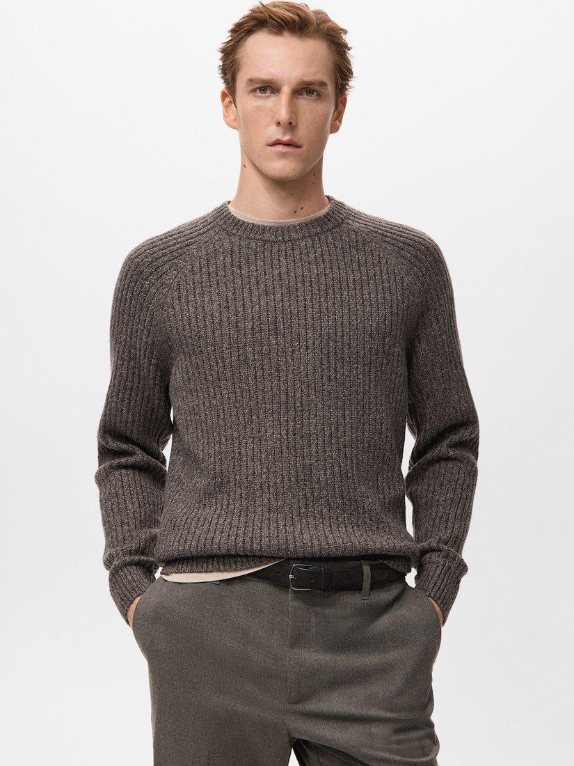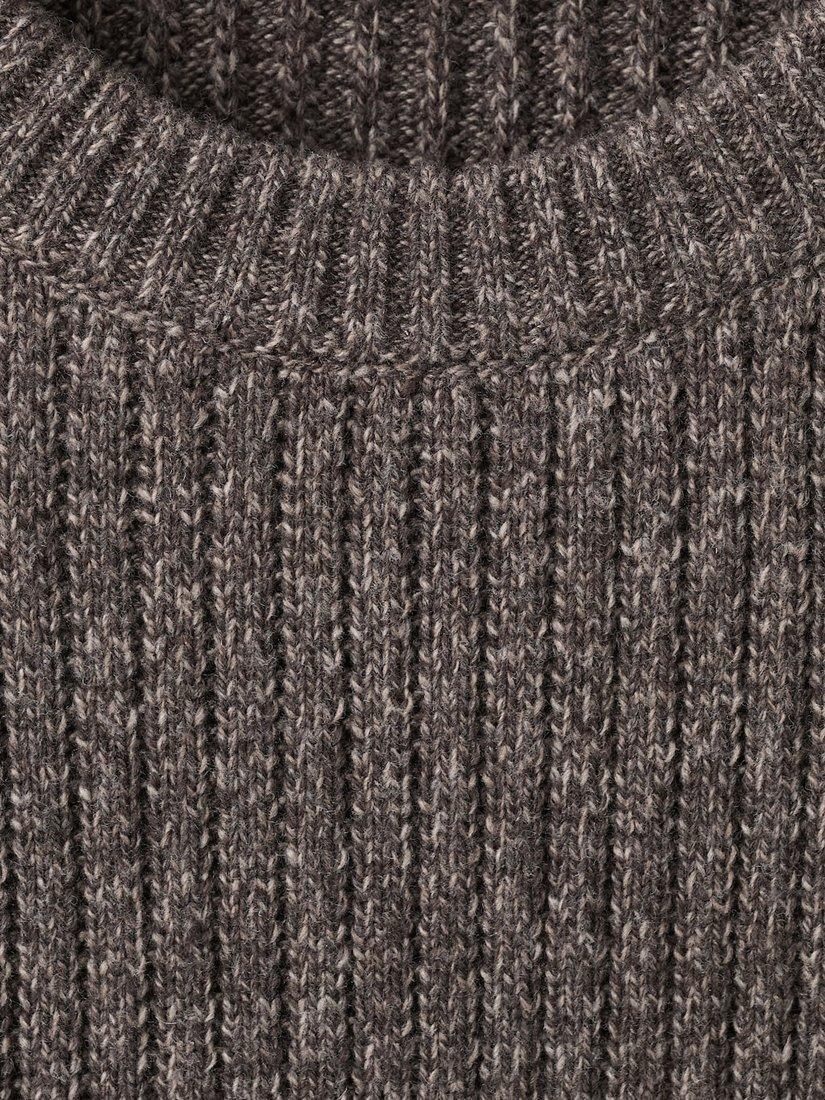 MangoJoan Wool Blend Crew Neck Cable Knit Jumper, Dark Brown