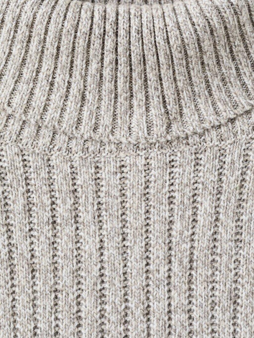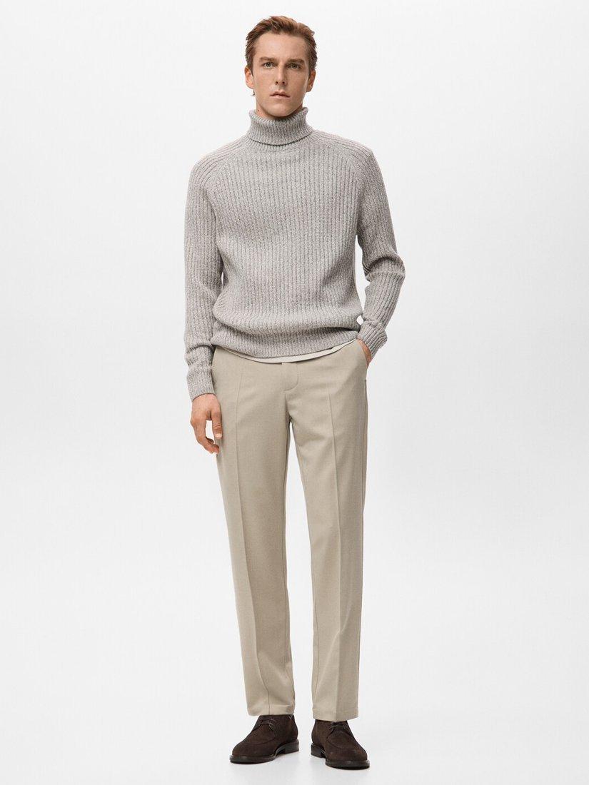 MangoJoan Wool Blend Roll Neck Cable Knit Jumper, Light Beige