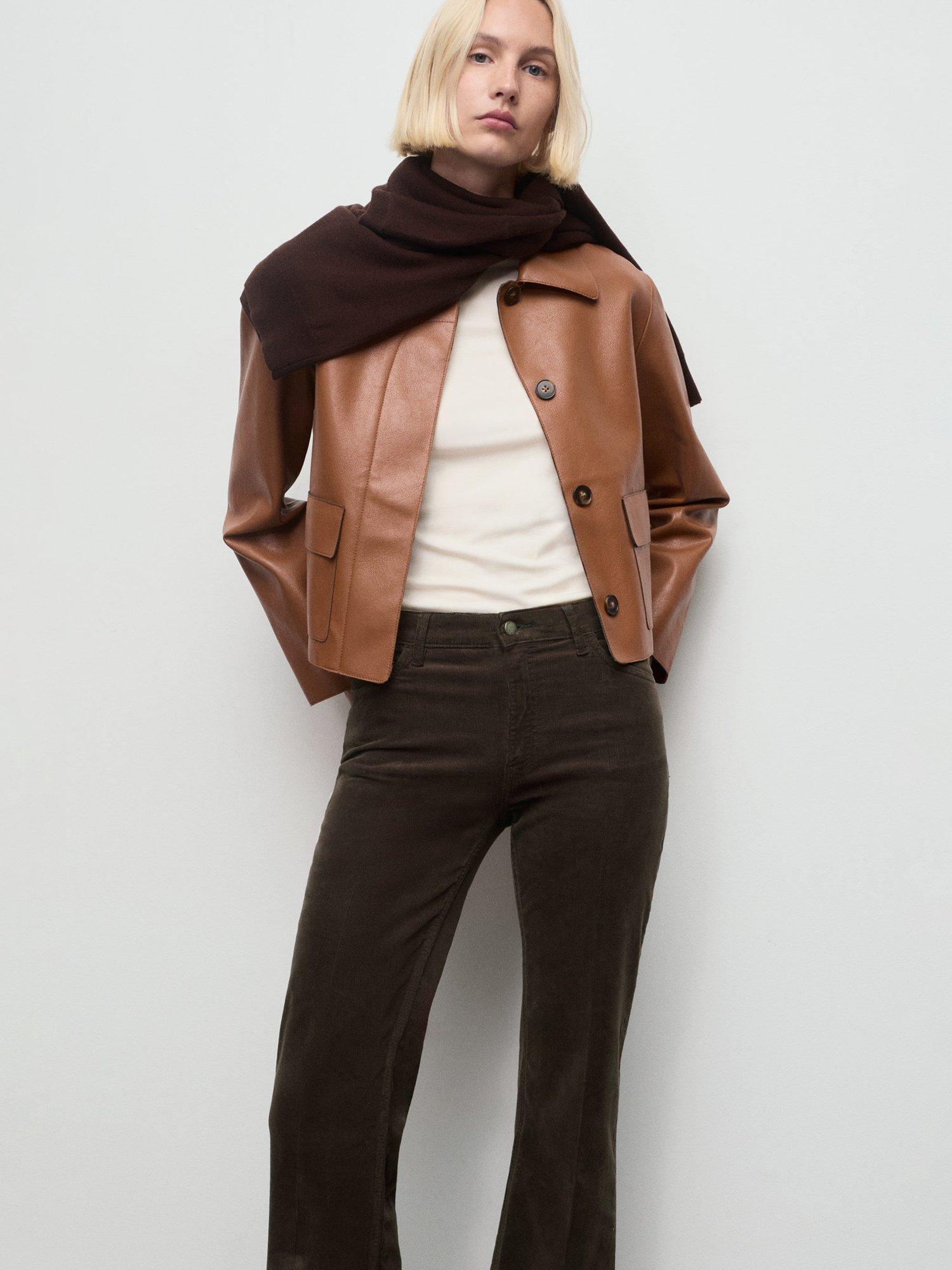 Flared corduroy jeans from Mango. Sculpted from a stretchy cotton blend with a mid rise and a classic button and zip fly, they fall to a regular length.