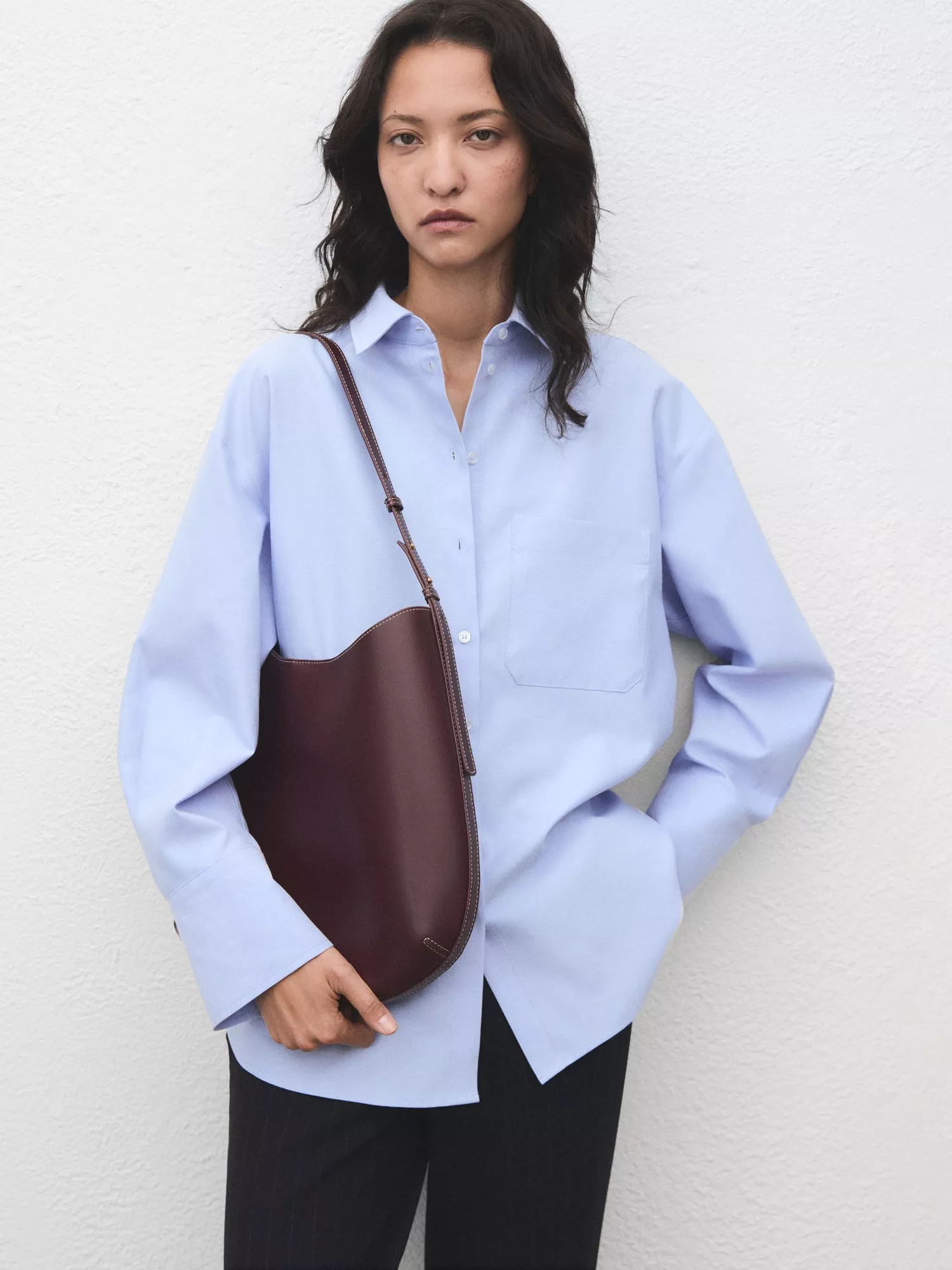 MangoJuany Pocket Oversized Shirt, Pastel Blue
