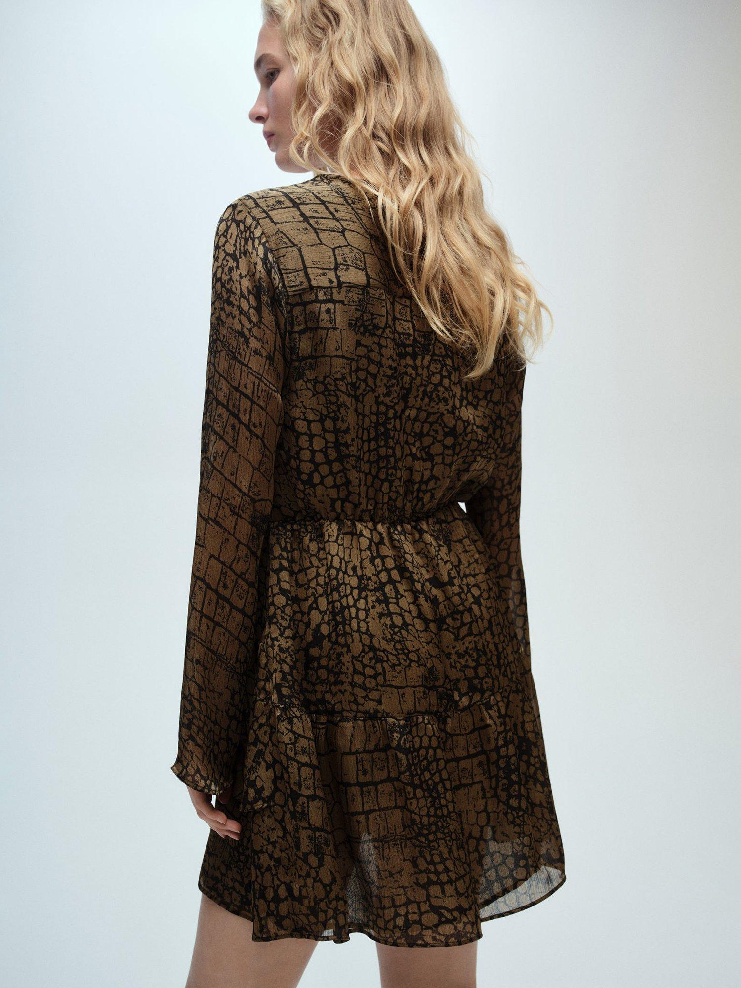 In an easy to wear A-line shape with ruffles aplenty, this mini dress from Mango is made from a lightweight fabric. Effortlessly flattering thanks to a fuss-free v-neckline and long sleeves, it receives a loud update with its bold animal print.