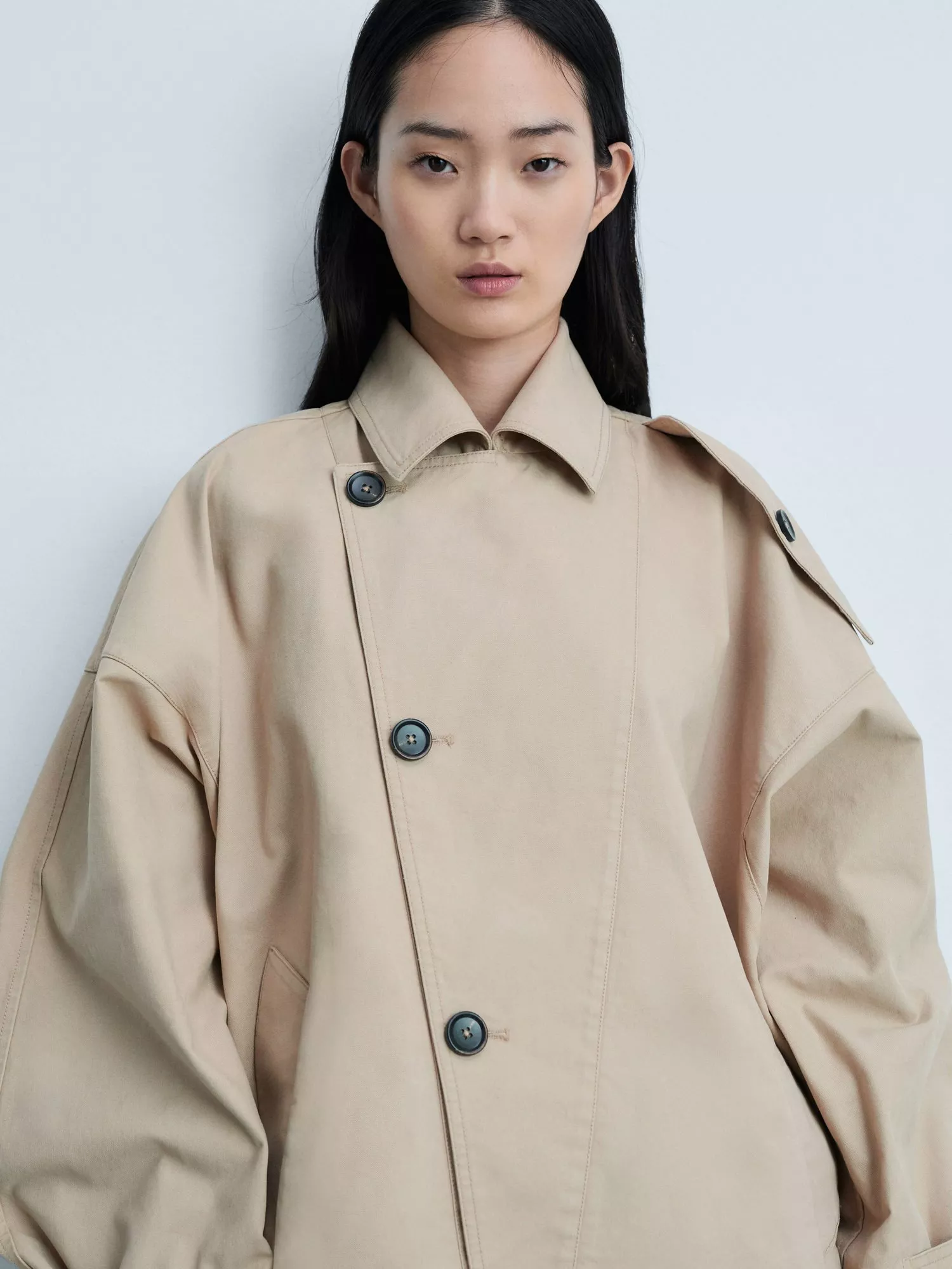 MangoJulia Asymmetric Short Trench Coat, Light Beige