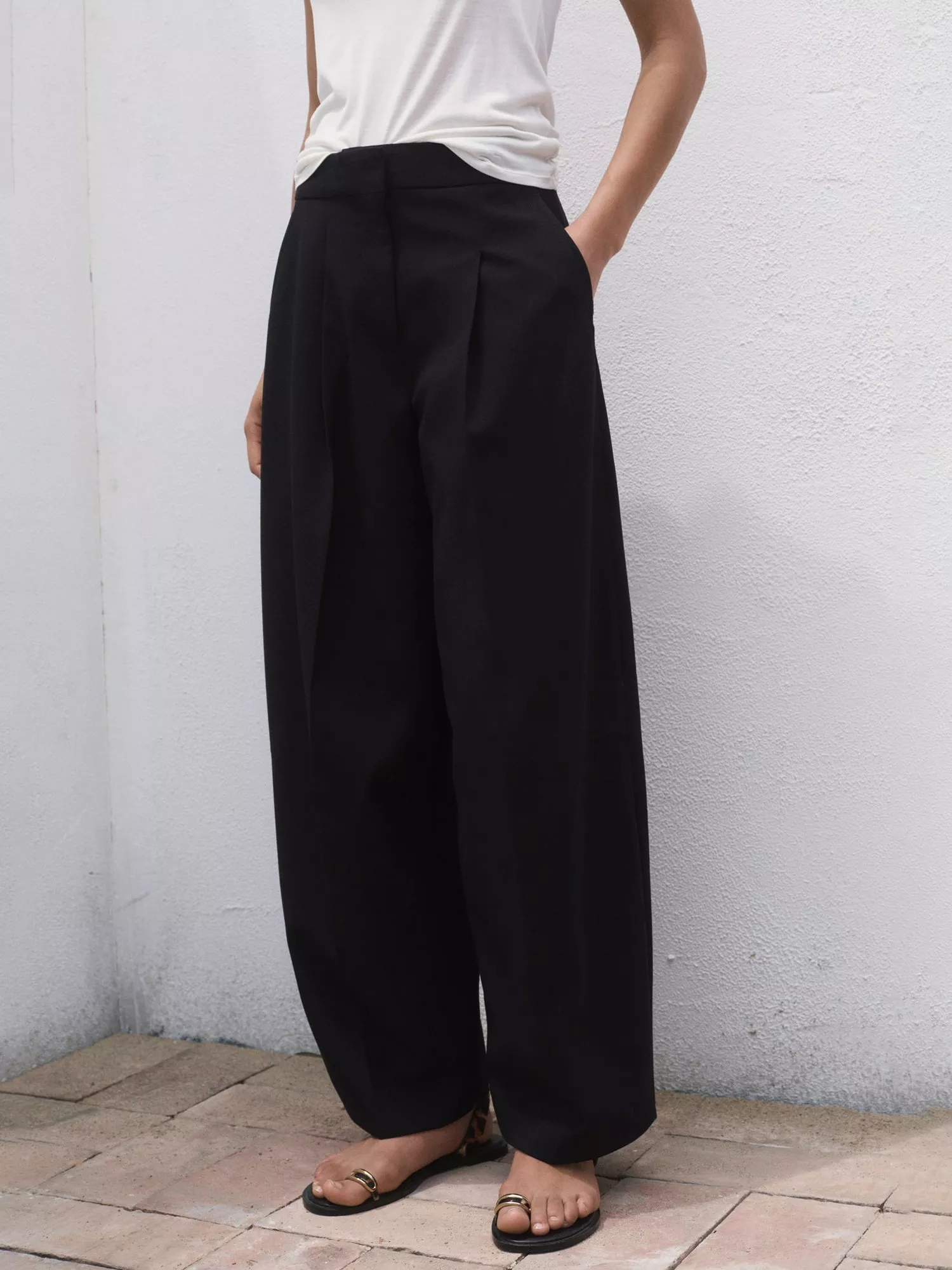 Step into your day with these tailored balloon leg trousers from Mango. They are designed to sit mid rise with a zip fastening for comfort and ease.