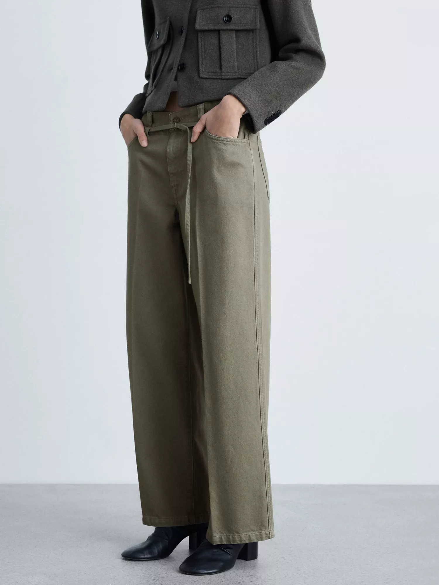 Mango's Julia are made from a denim style cotton fabric, cut with elegant wide-leg design. A long silhouette is topped with decorative belt looops, five pockets, and finished with a front zipper and button closure.