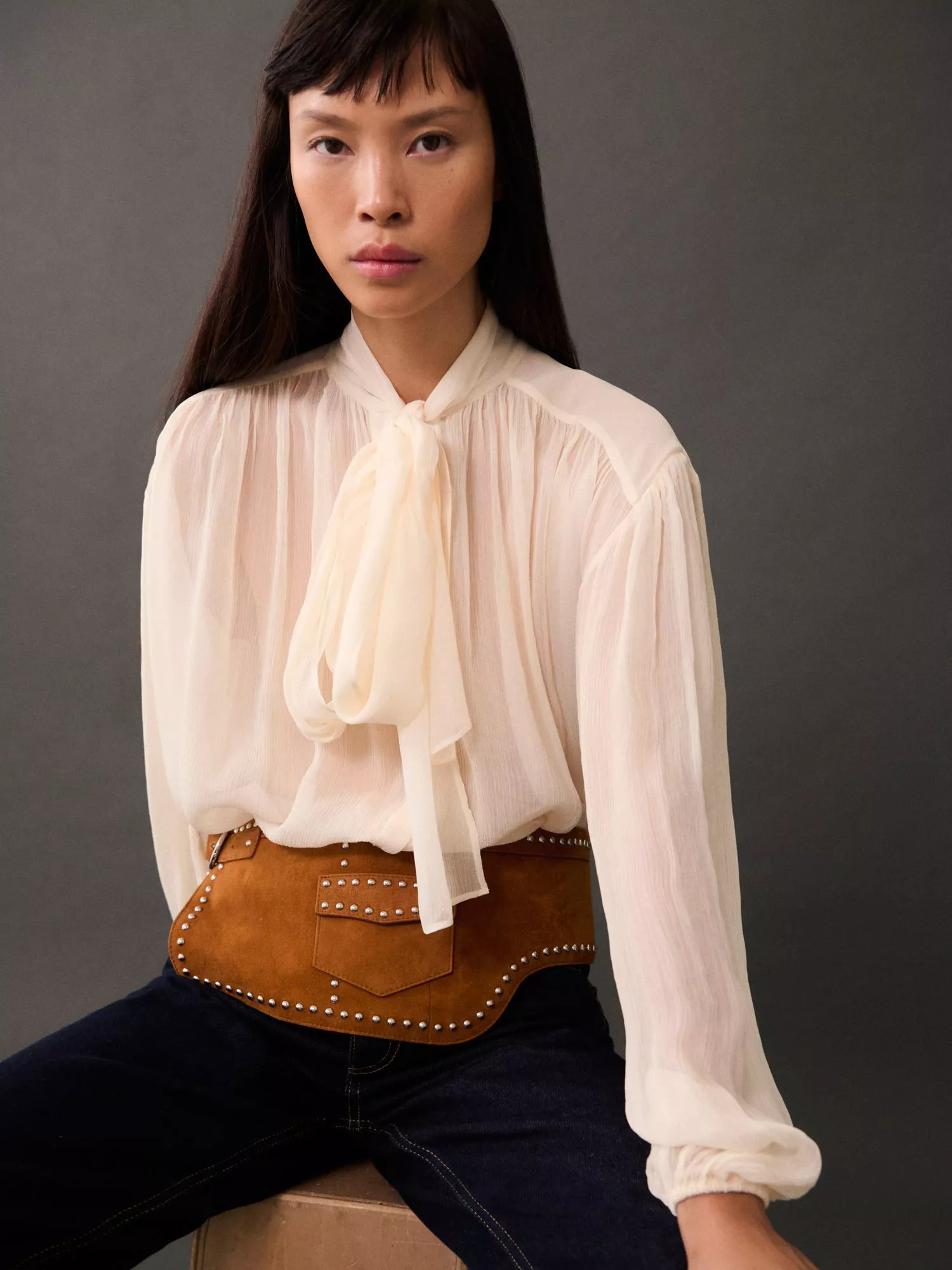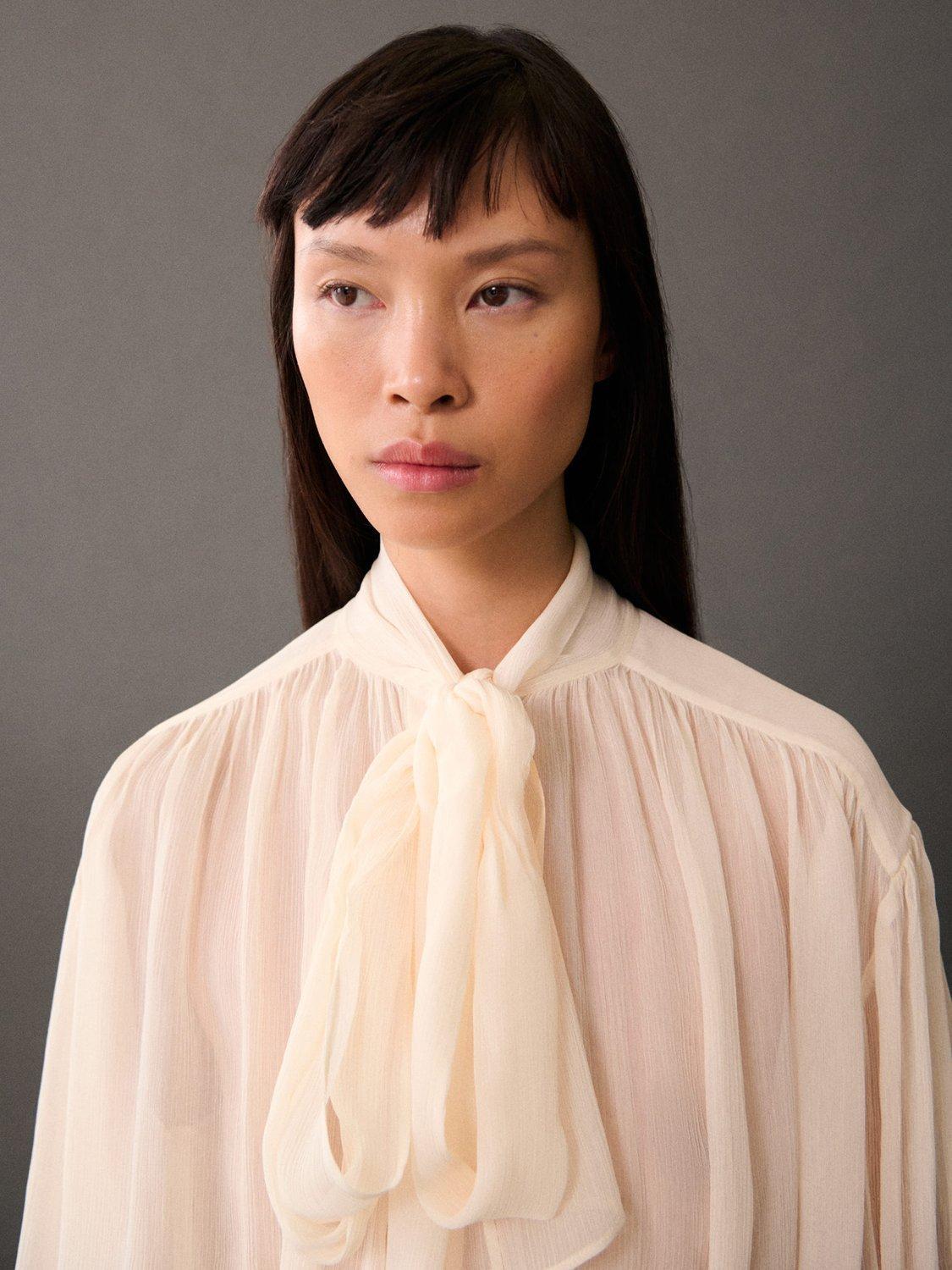 An effortless choice, this blouse from Mango makes for the perfect companion to patterned layers. With a tie detail at the neckline and long sleeves, it is made with light yet robust fabric for longevity of wear and is an easy daytime option.