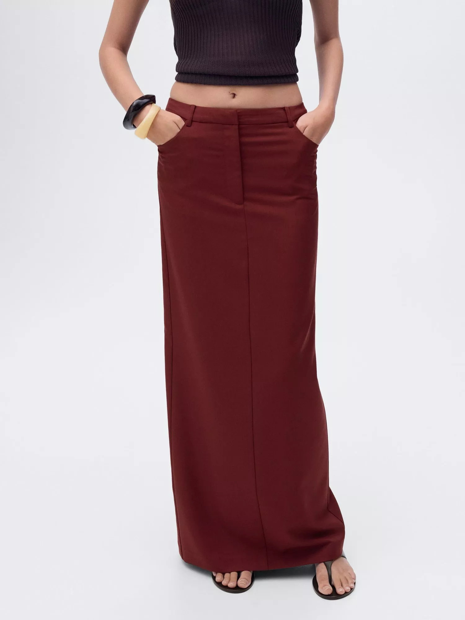 MangoKaribi Straight Maxi Skirt, Dark Red
