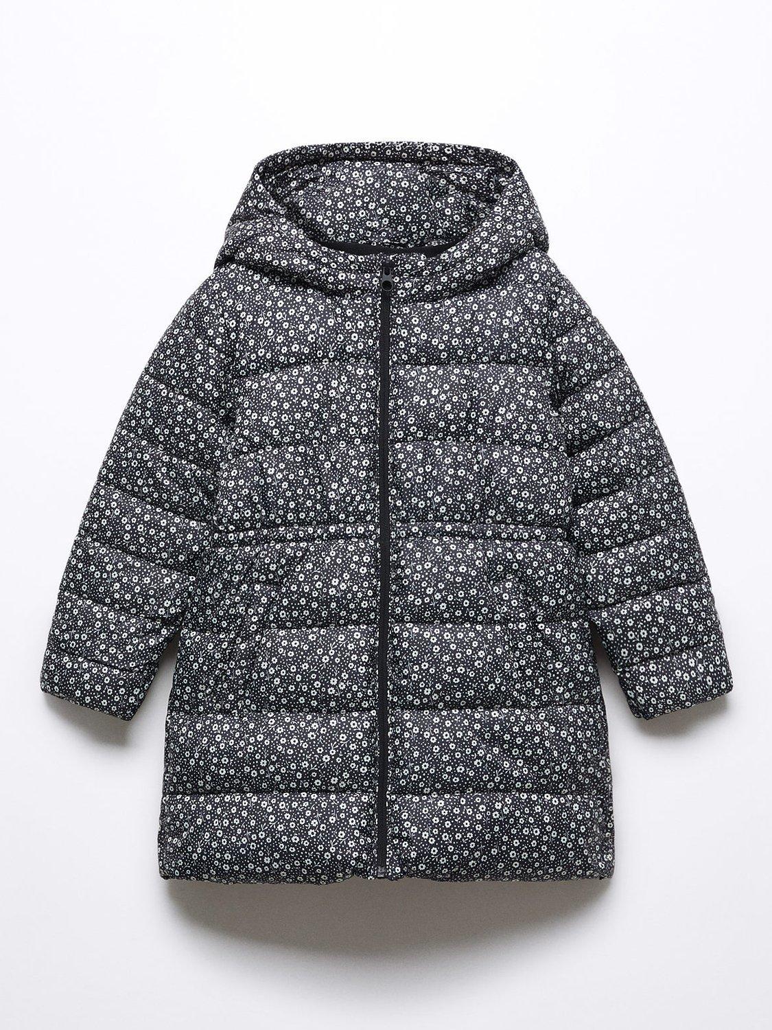 MangoKids' Alilong Quilted Long Jacket, Black/Multi