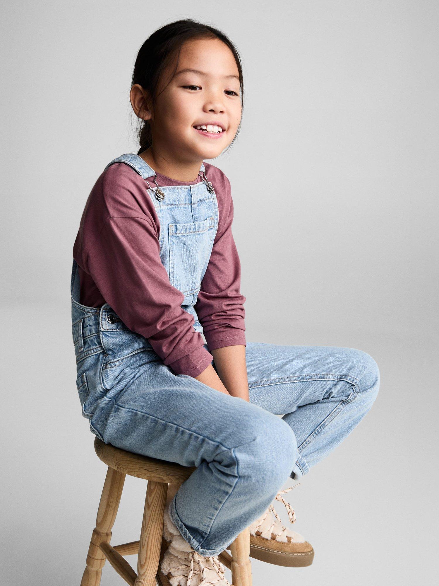 MangoKids' Amara Denim Dungarees, Mid Blue
