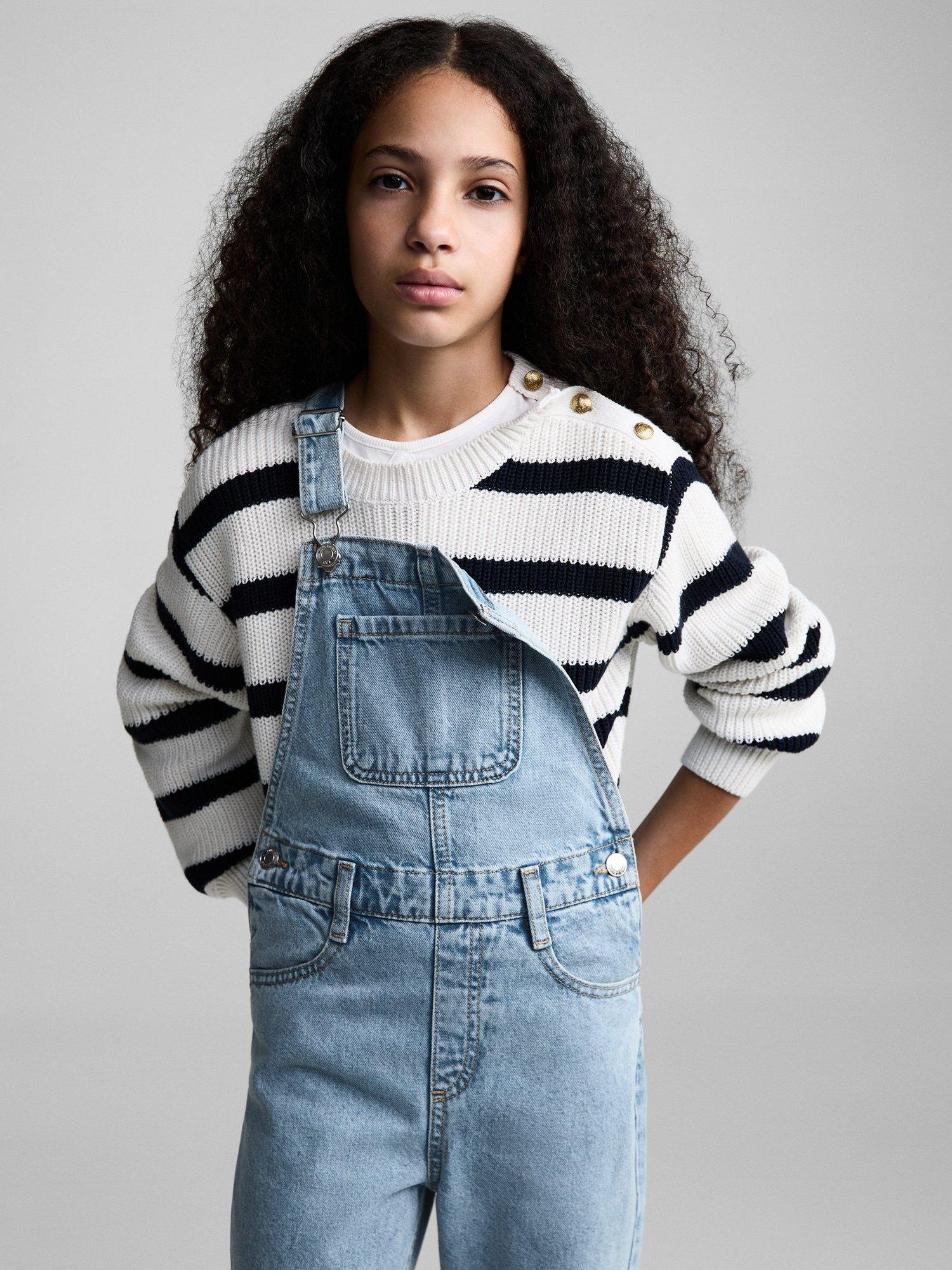 MangoKids' Amara Dungarees, Open Blue