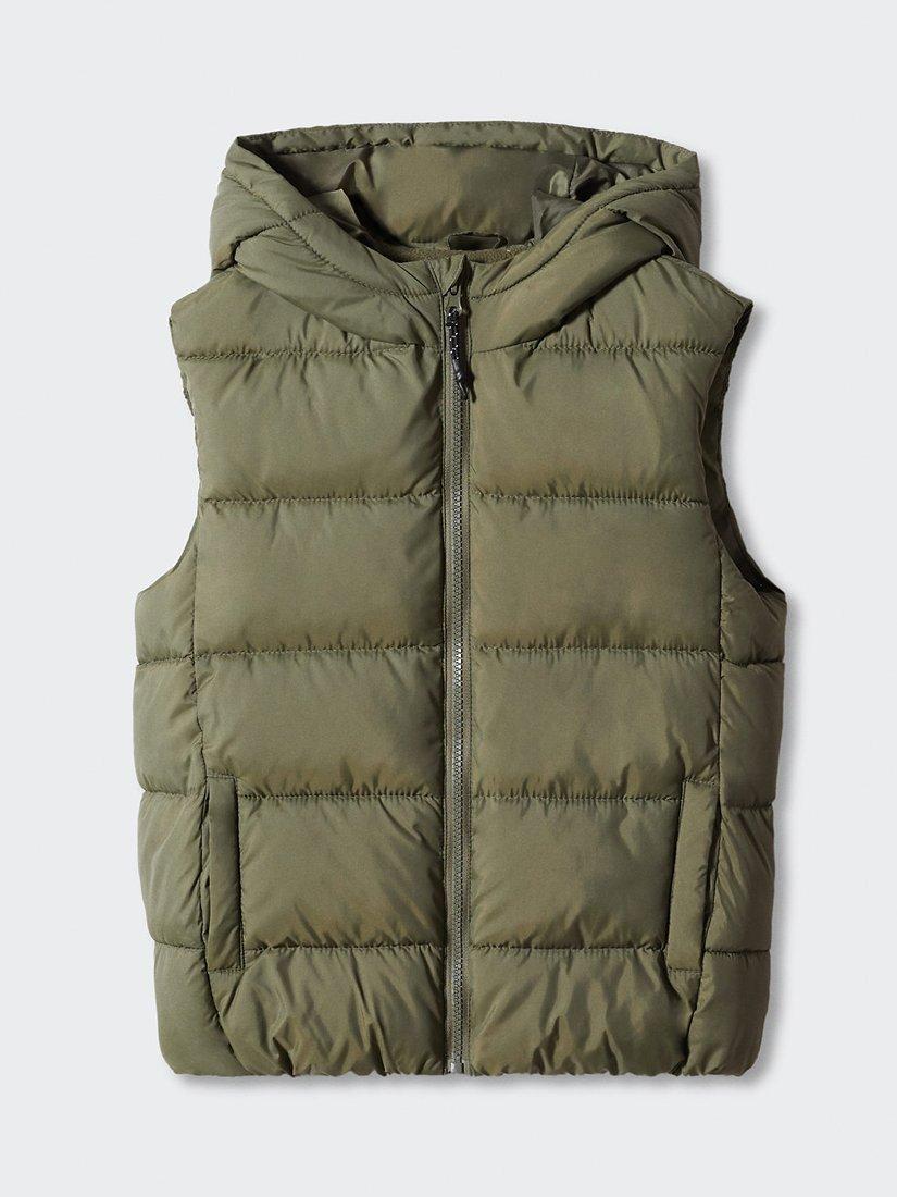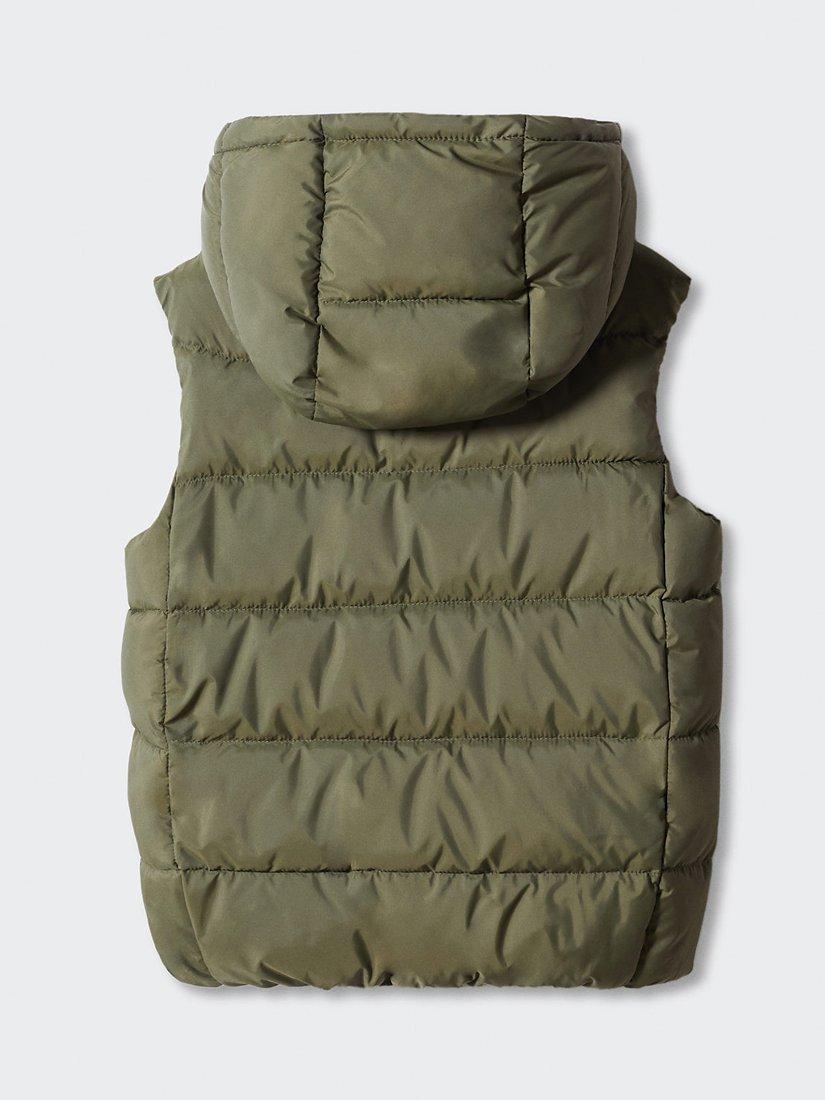 MangoKids' Amerv Padded Fleece Lined Hooded Gilet, Khaki