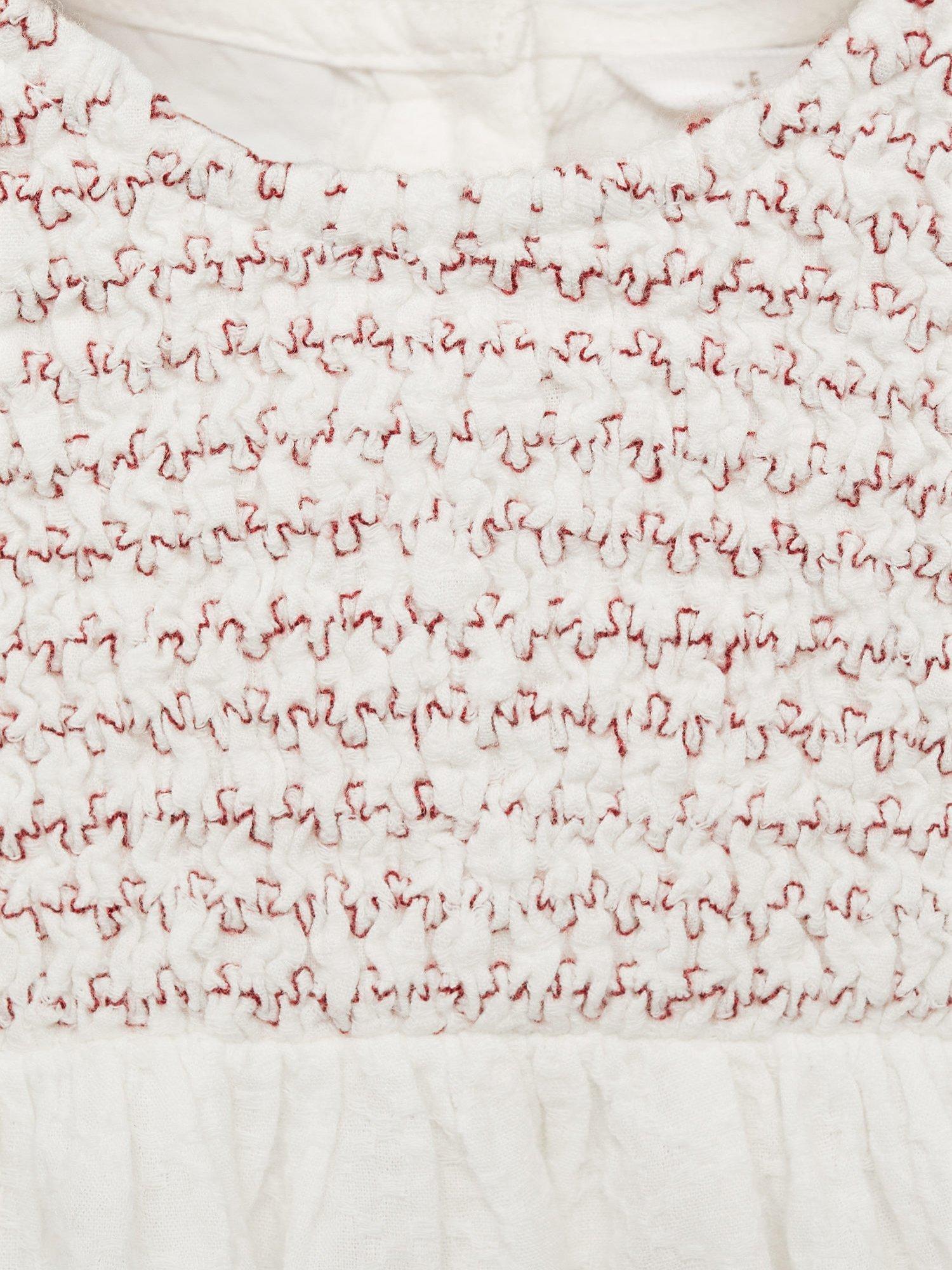 Made from pure cotton with a short ruffle sleeve, this blouse from Mango features a textured smocked design.
