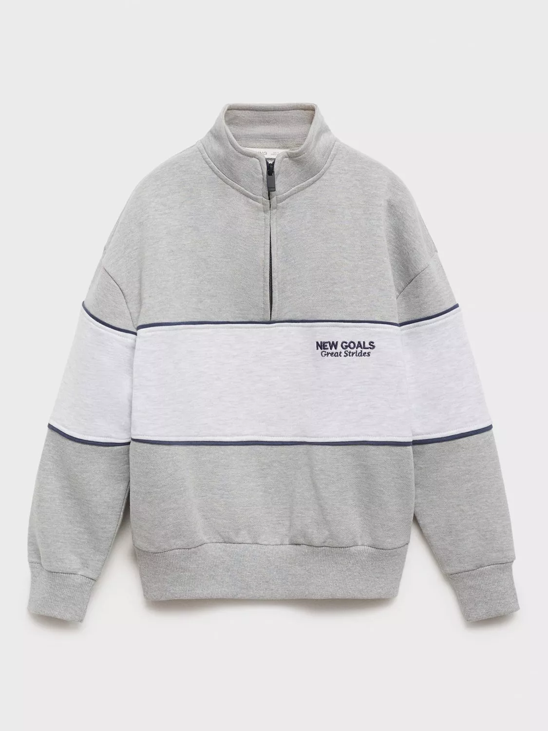 MangoKids' Apres Cotton Blend Zip Neck Sweatshirt, Medium Grey