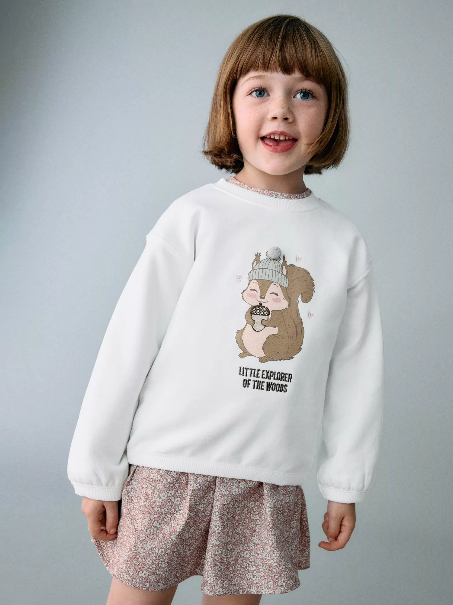 This long-sleeve cotton sweatshirt features a playful squirrel design, making it a comfortable choice for any outing. Designed for easy movement and effortless coordination with their favourite outfits.