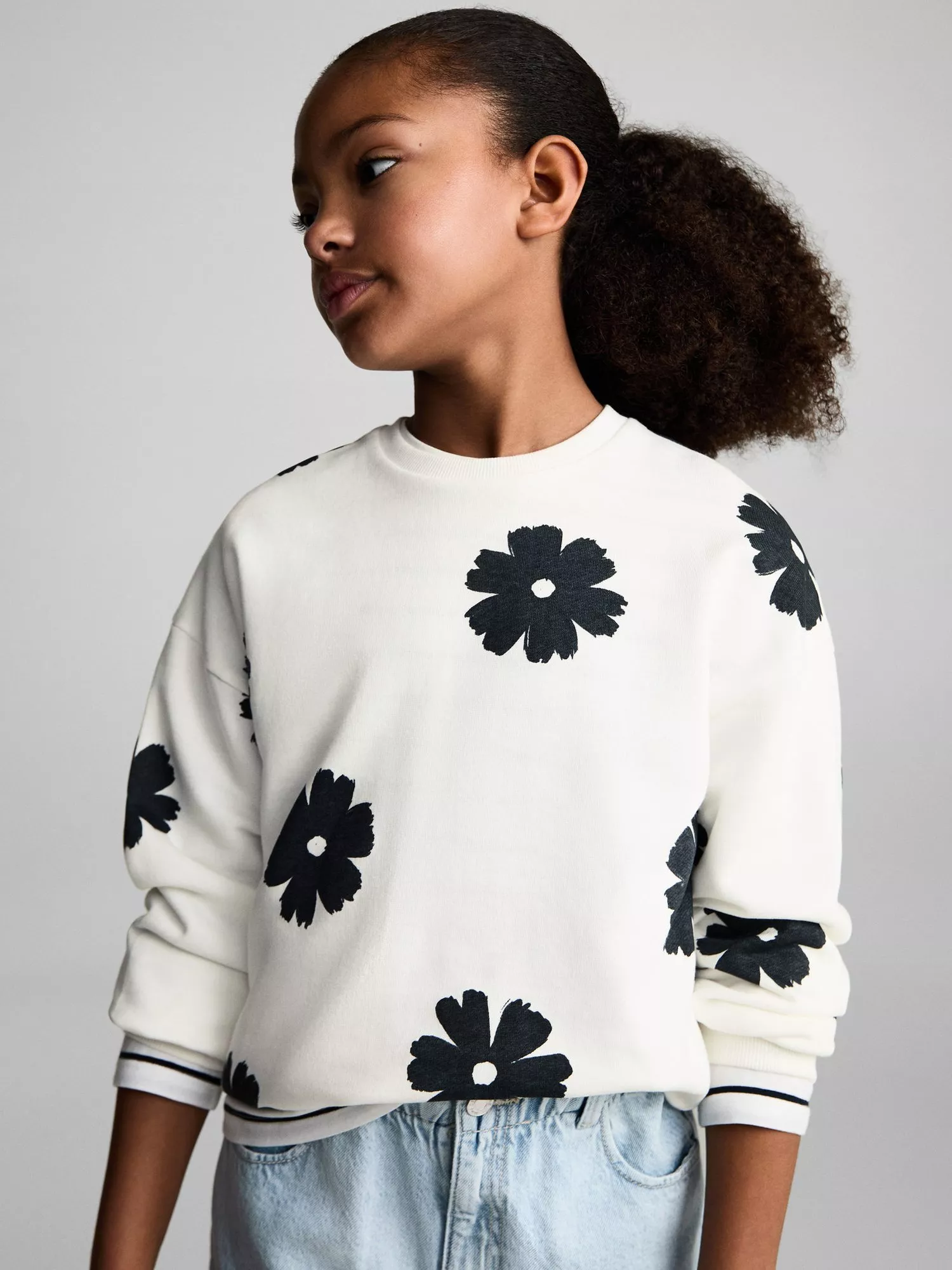 MangoKids' Arty Floral Sweatshirt, Natural White