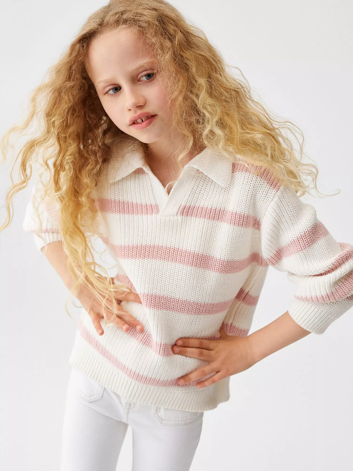 MangoKids' Aysha Stripe Knitted Jumper, Pink/White