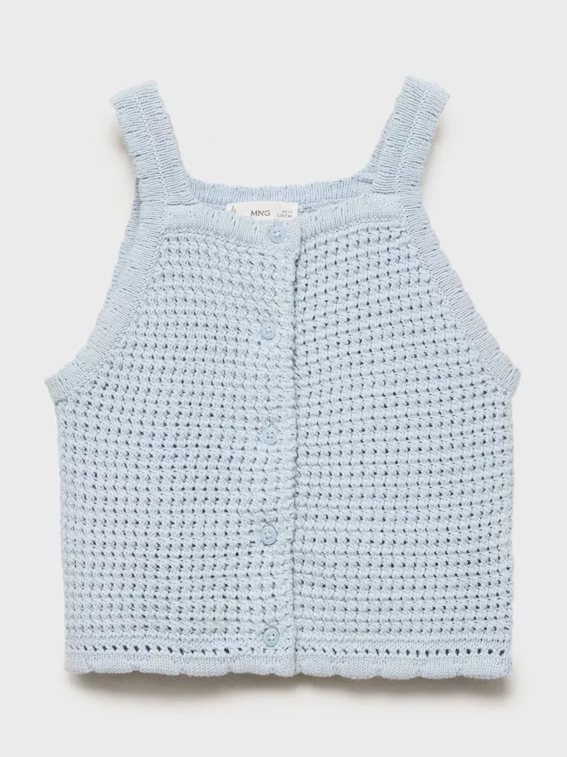 Made from 100% cotton in a crochet knit design, this top from Mango features scallop edging and buttons through the front.