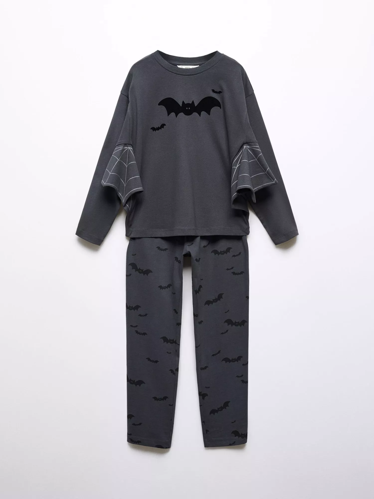MangoKids' Bat Pyjama Top & Bottoms Set, Charcoal