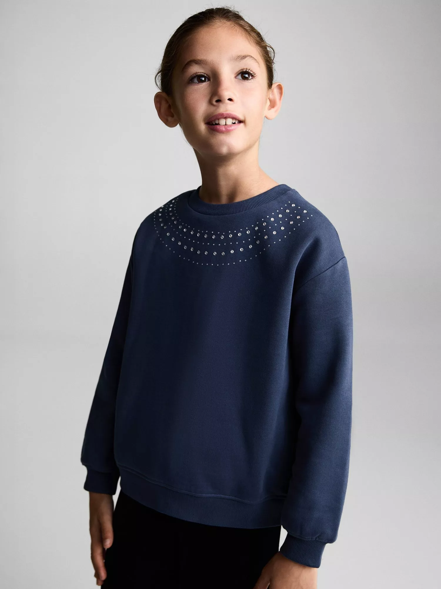 MangoKids' Beaded Collar Sweatshirt, Navy