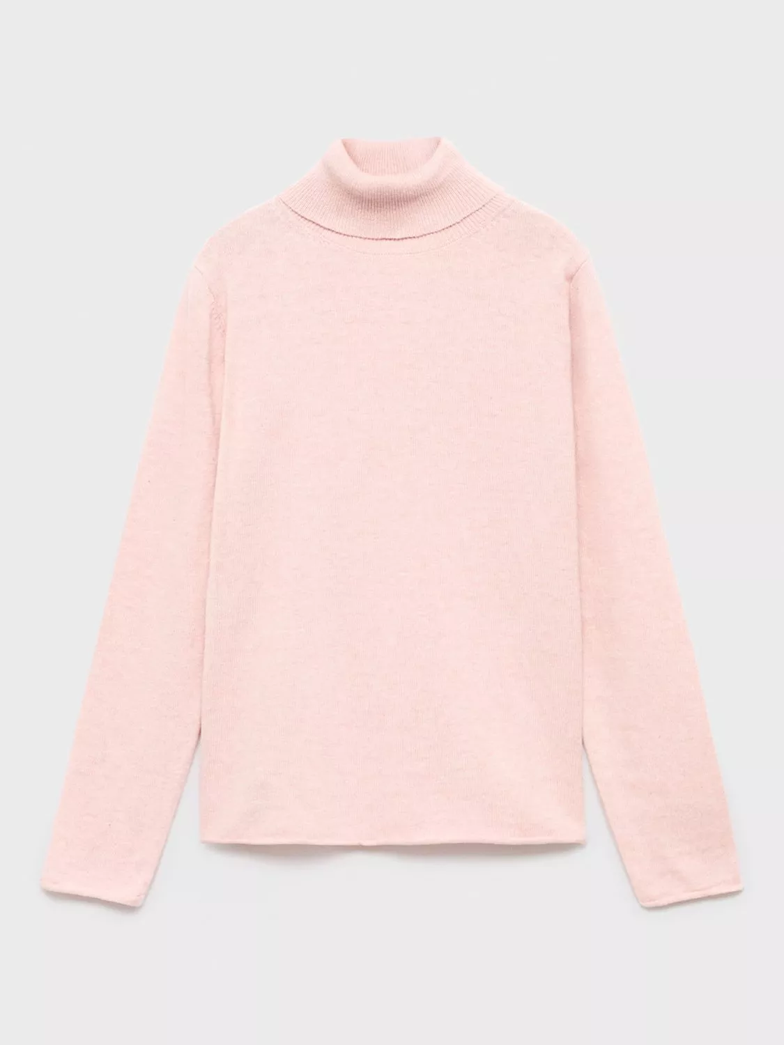 MangoKids' Bella Cotton High Neck Jumper, Light Pink