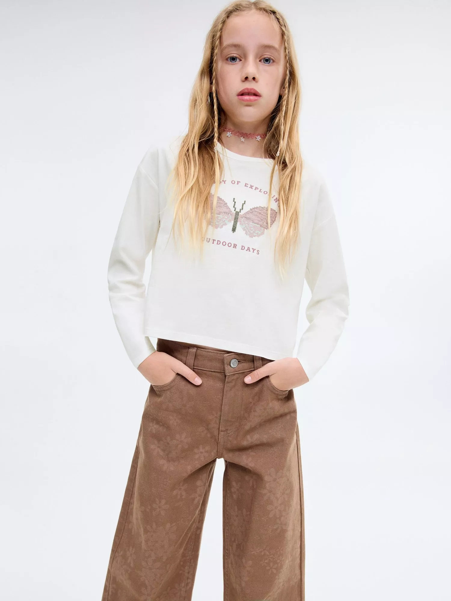 Butterfly printed long sleeve t-shirt with a round neck for ease of wear and comfort.