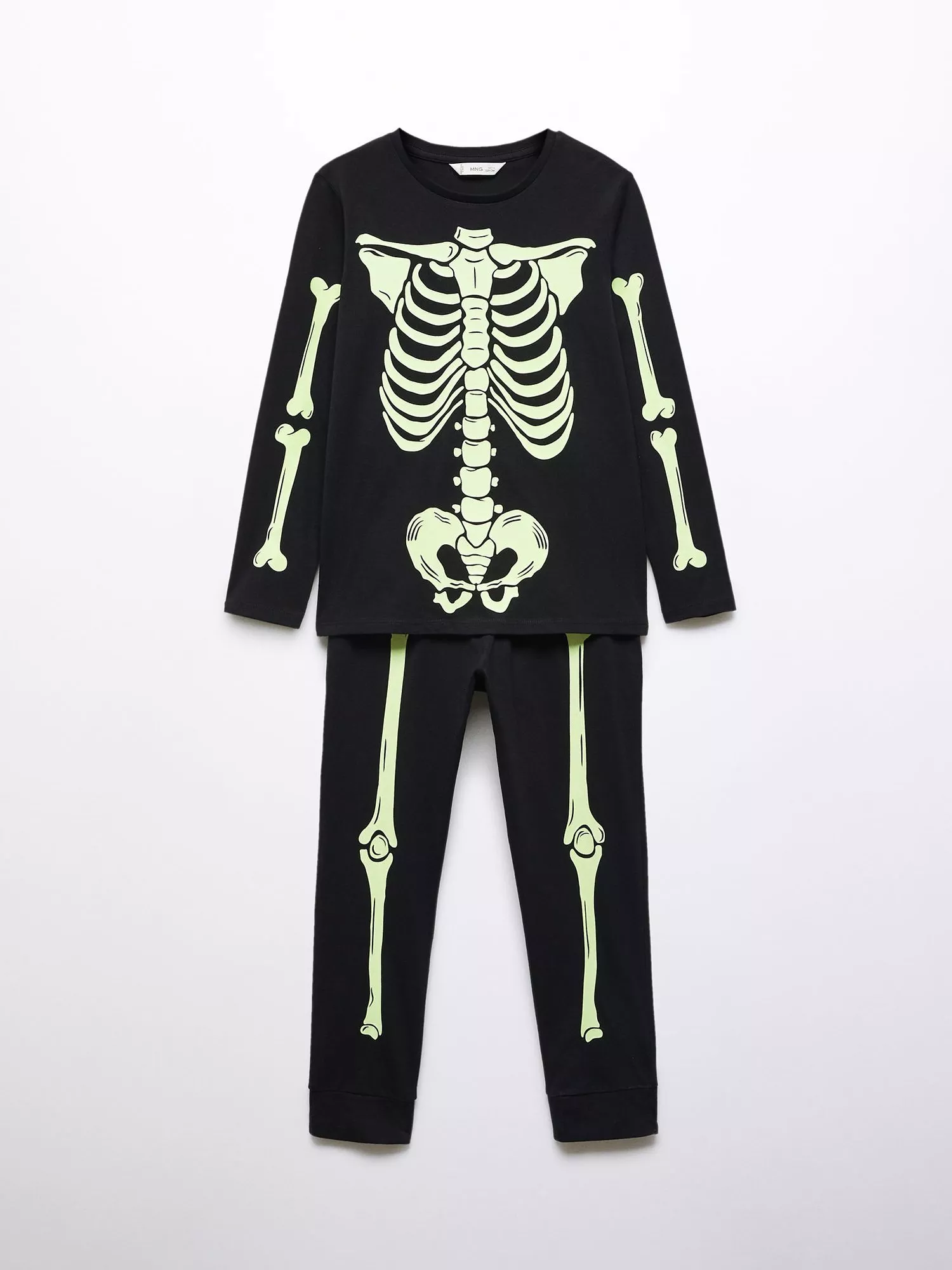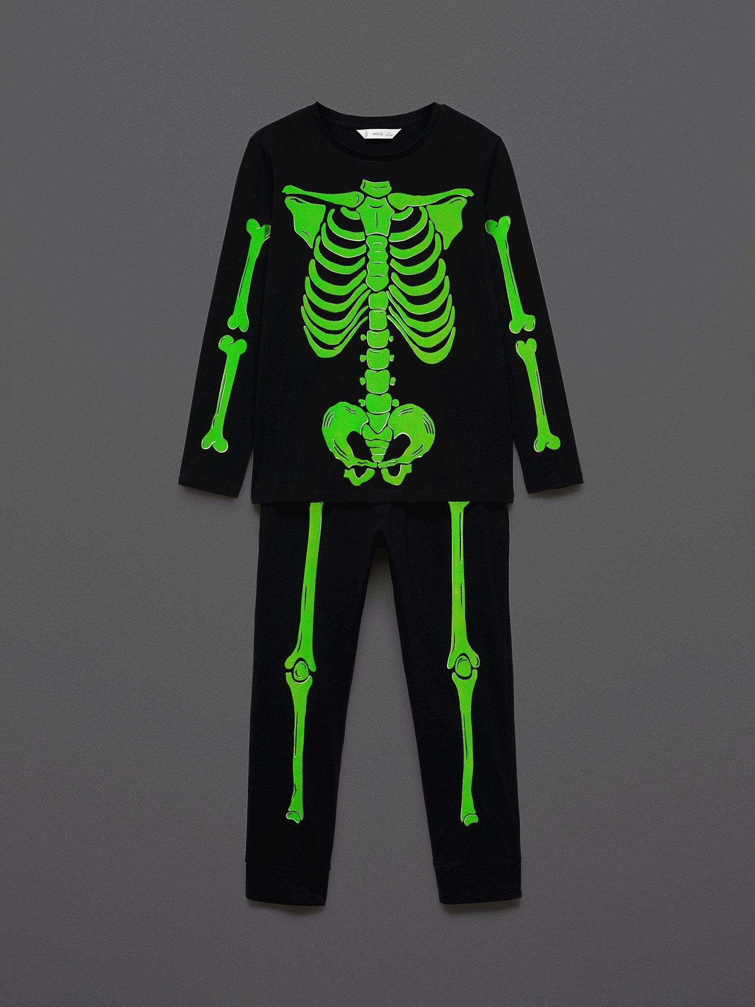 As part of Mango's Halloween Collection, these glow-in-the-dark skeleton pyjamas are made from pure cotton for a comfortable night's sleeping or trick or treating.