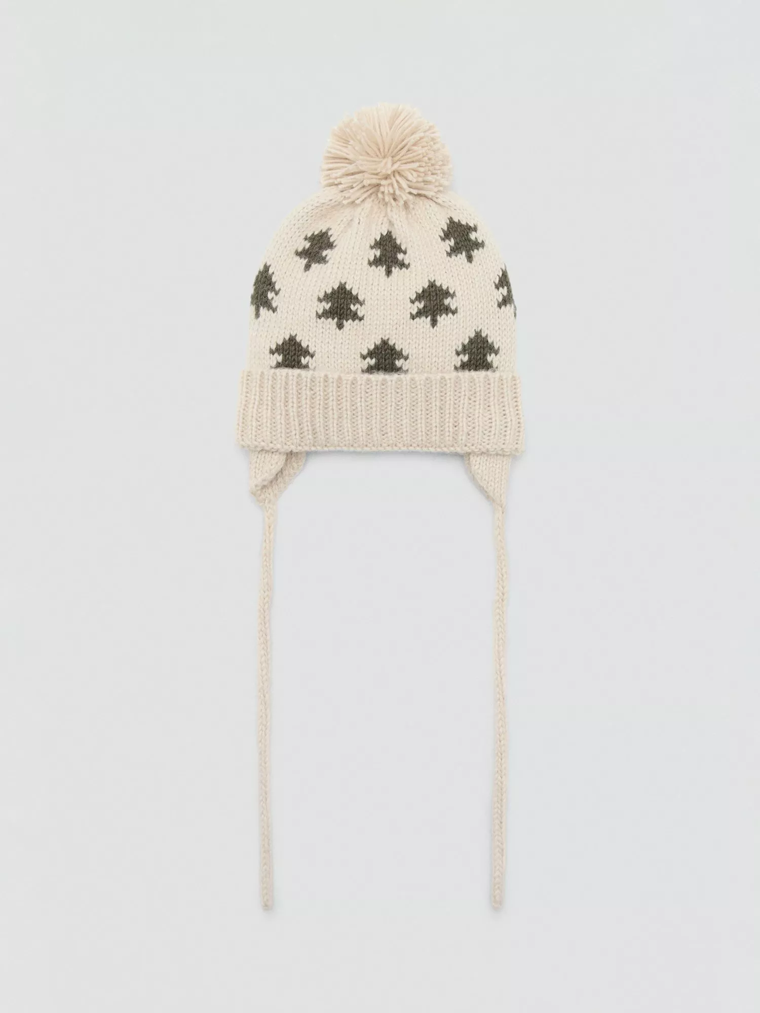 MangoKids' Bosque Tree Beanie Hat, Beige/Dark Green