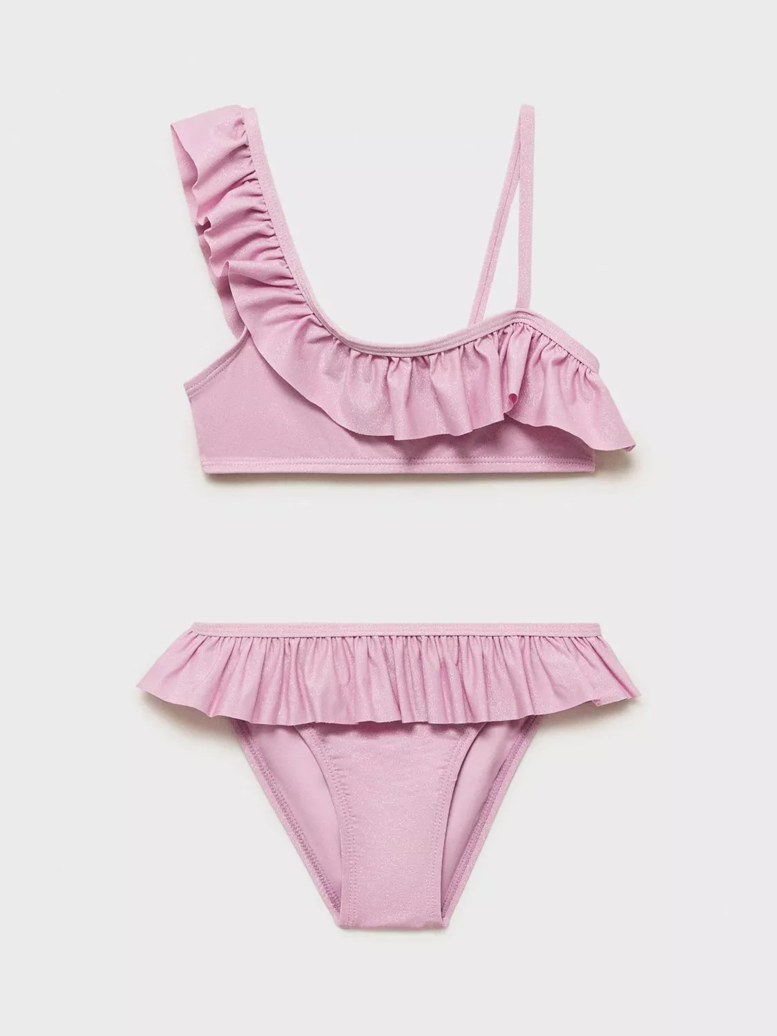 Get them summer ready with this bikini from Mango. Designed in a one-shoulder style with a fixed strap on the the top, and full-brief cut on the bottoms, with frill detailing on both.