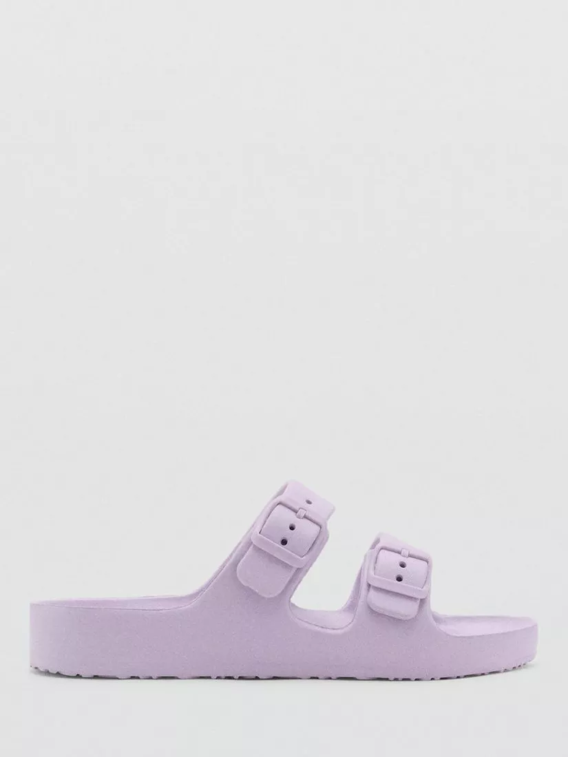 Rubberised, round-toe sandals with adjustable buckles. Idea for around the pool.
