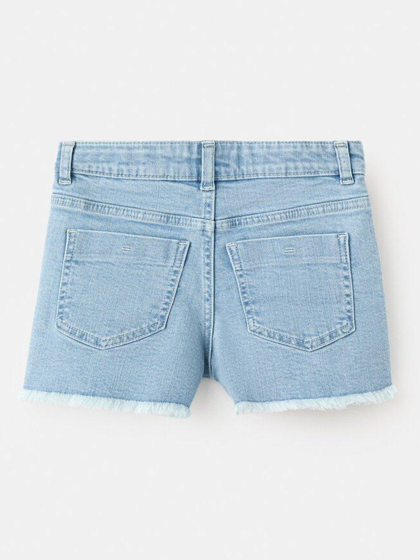 These frayed hem denim shorts offer kids plenty of movement for play and feature a comfortable waistband that stays secure through everyday adventures.