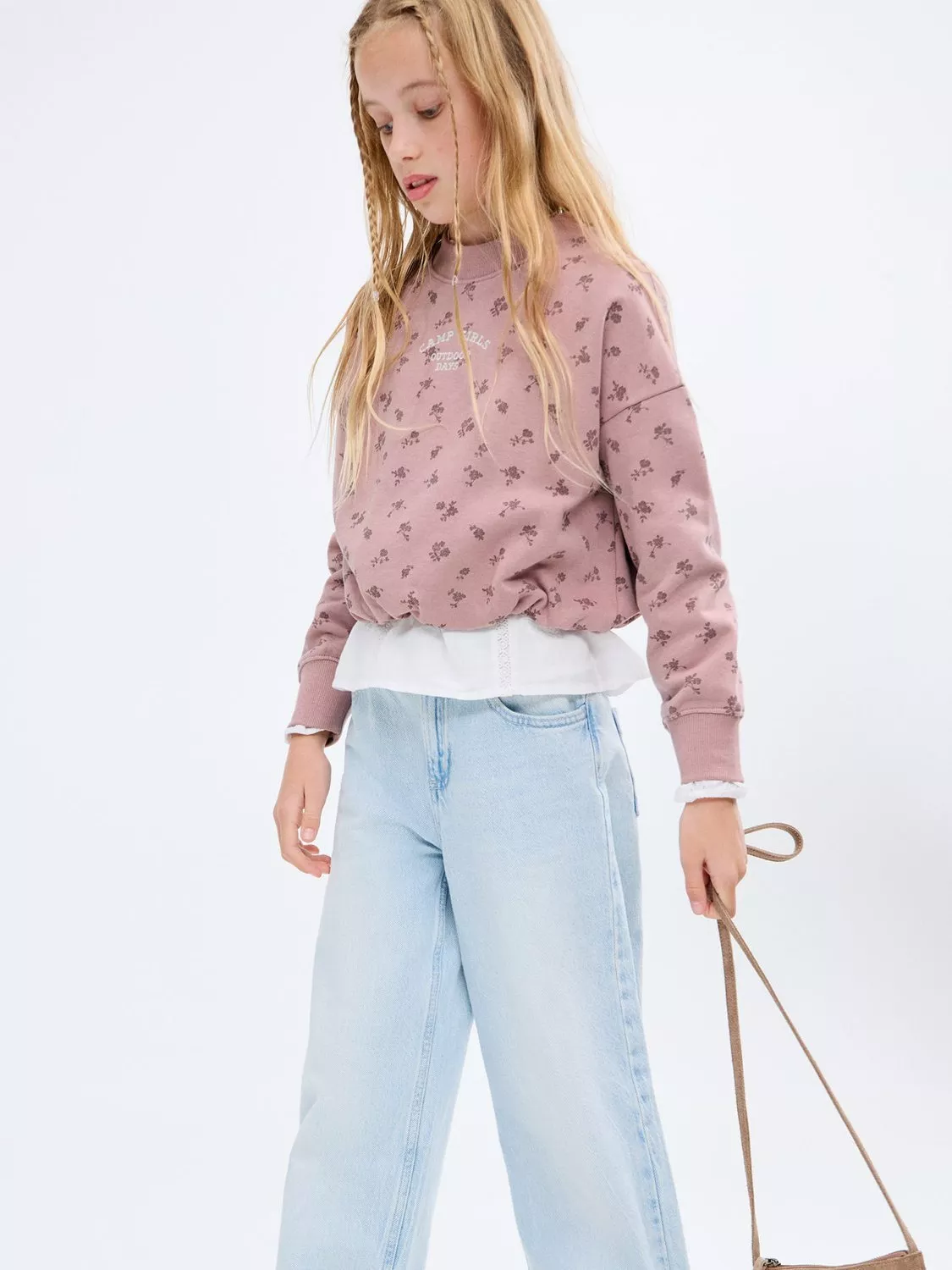100% cotton fabric in a floral-print design with embroidery on the front and gathered detail at the hem.