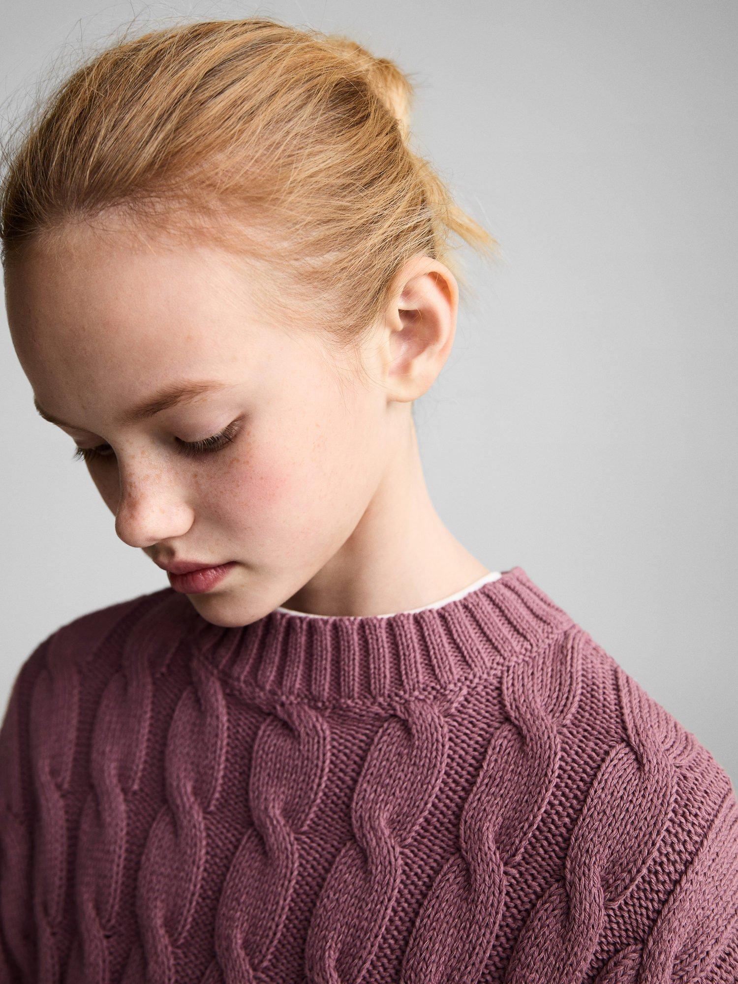 MangoKids' Carli Cable Knit Jumper, Dark Red, 13-14 years