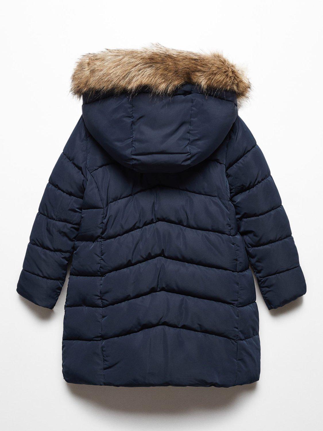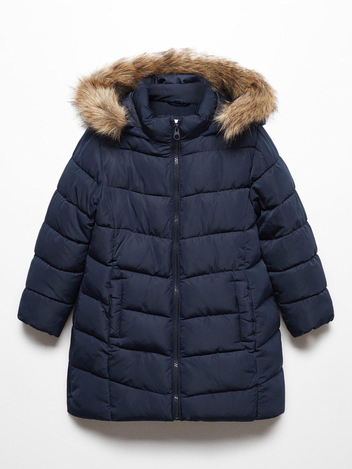 Warm them up in this quilted longline coat. Comes with a faux fur trimmed hood.