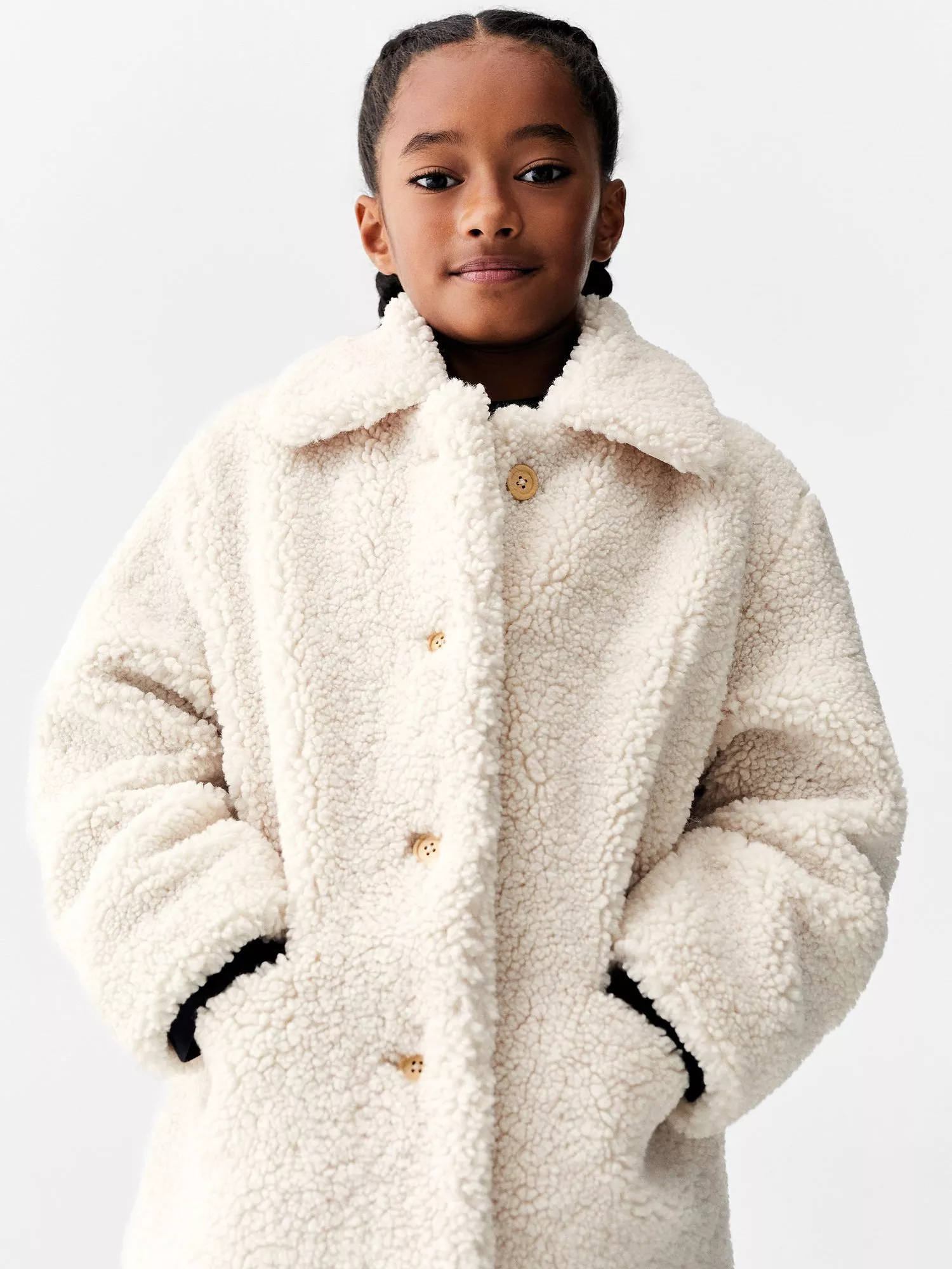 Faux shearling makes this coat extra warm. Designed with two cosy pockets, button fastenings and a useful name label.