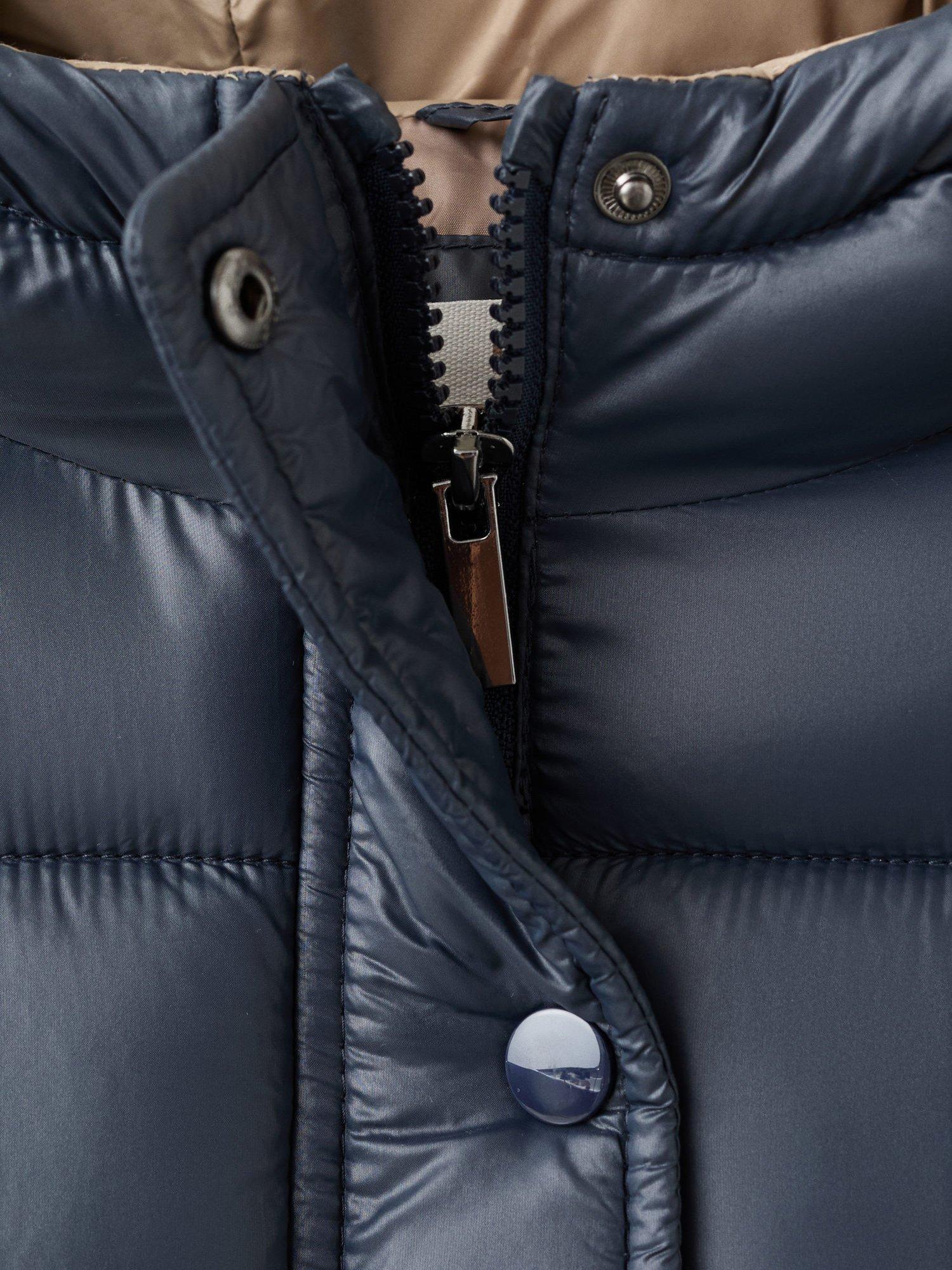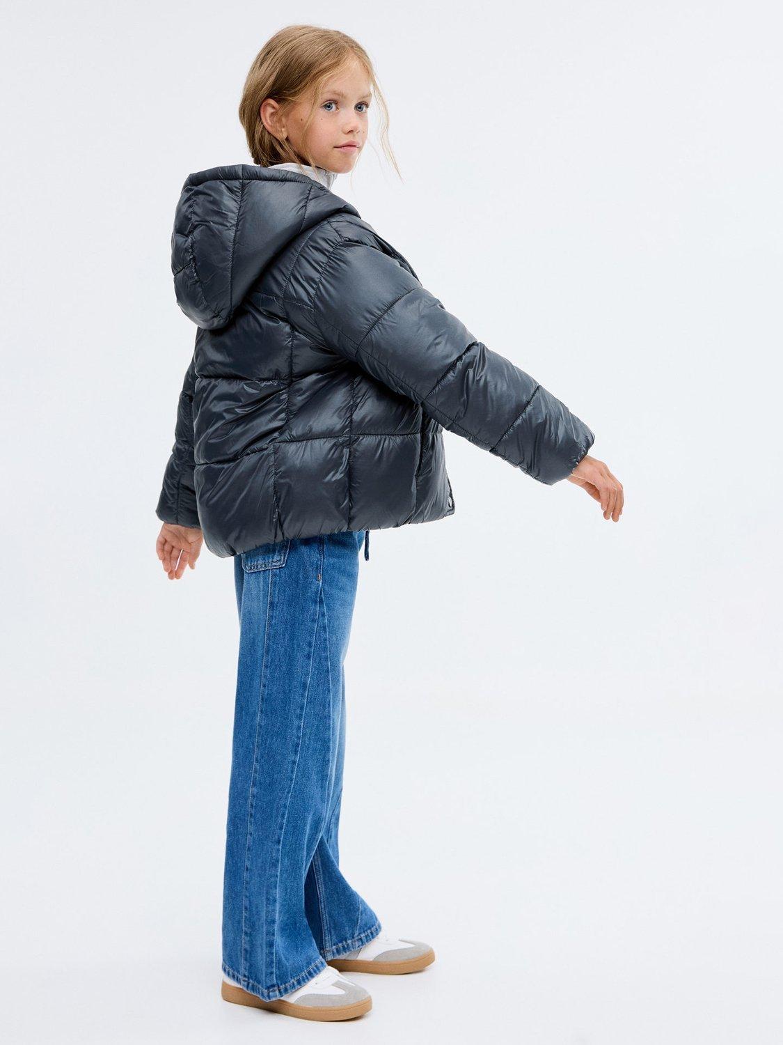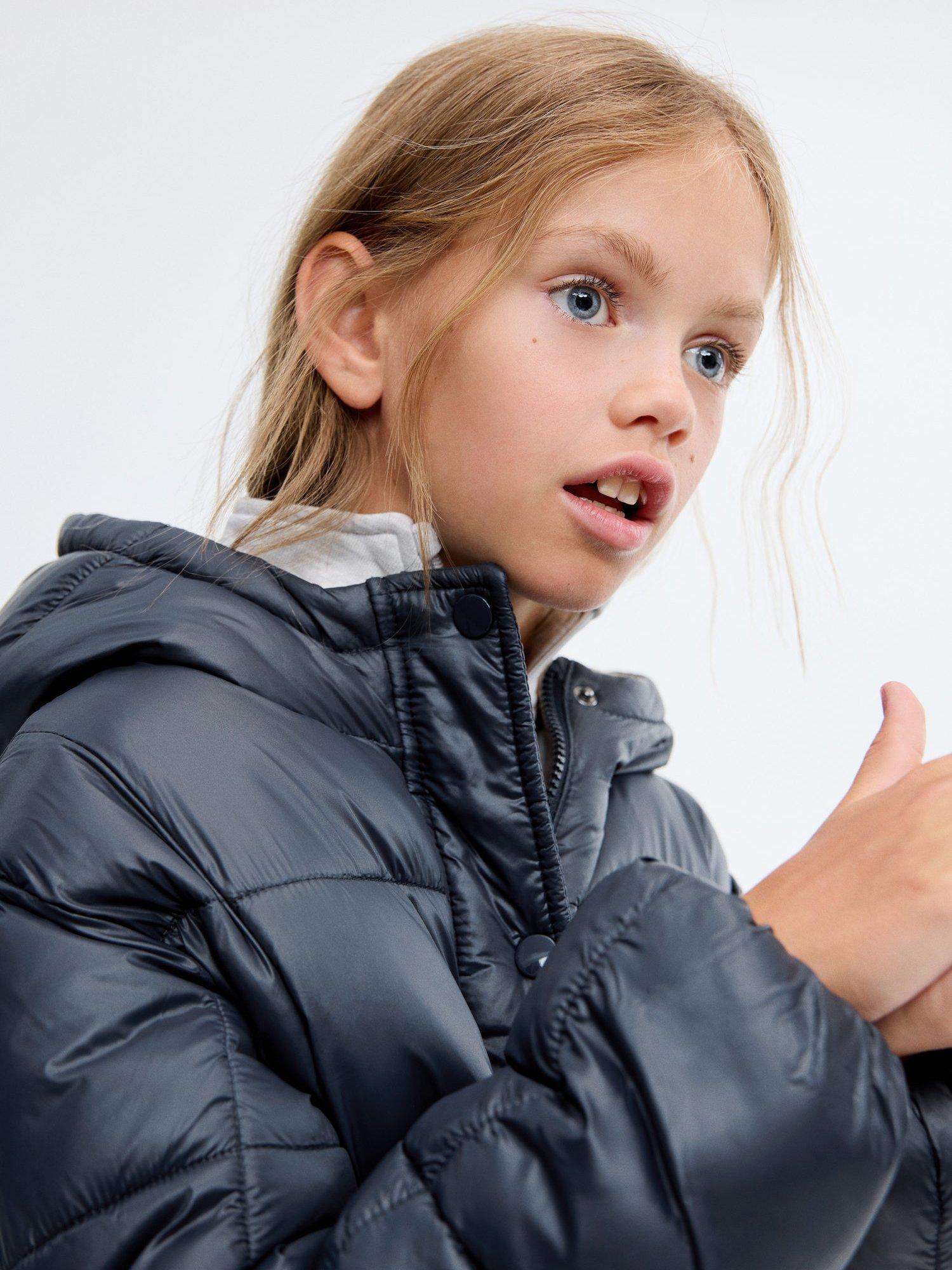 Quilted fabric coat with hood.
